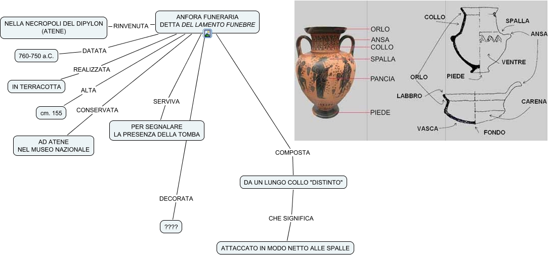 Questa Mappa Concettuale ha informazioni correlate a: 3 ANFORA FUNERARIA DEL LAMENTO FUNEBRE, ANFORA FUNERARIA DETTA DEL LAMENTO FUNEBRE CONSERVATA AD ATENE NEL MUSEO NAZIONALE, ANFORA FUNERARIA DETTA DEL LAMENTO FUNEBRE REALIZZATA IN TERRACOTTA, ANFORA FUNERARIA DETTA DEL LAMENTO FUNEBRE COMPOSTA DA UN LUNGO COLLO "DISTINTO", ANFORA FUNERARIA DETTA DEL LAMENTO FUNEBRE RINVENUTA NELLA NECROPOLI DEL DIPYLON (ATENE), DA UN LUNGO COLLO "DISTINTO" CHE SIGNIFICA ATTACCATO IN MODO NETTO ALLE SPALLE, ANFORA FUNERARIA DETTA DEL LAMENTO FUNEBRE DECORATA ????, ANFORA FUNERARIA DETTA DEL LAMENTO FUNEBRE DATATA 760-750 a.C., ANFORA FUNERARIA DETTA DEL LAMENTO FUNEBRE ALTA cm. 155, ANFORA FUNERARIA DETTA DEL LAMENTO FUNEBRE SERVIVA PER SEGNALARE LA PRESENZA DELLA TOMBA