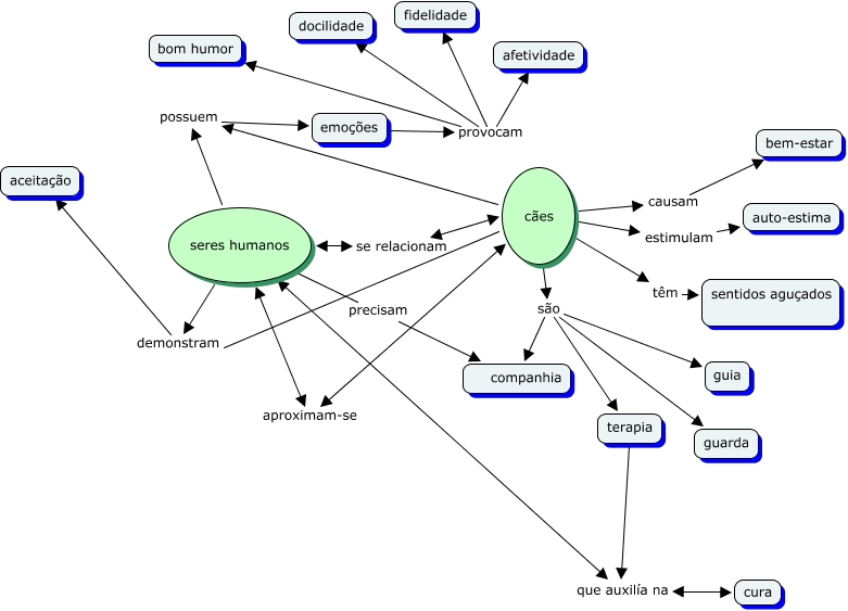 Esse mapa conceitual, produzido no IHMC CmapTools, tem a informação relacionada a: do grupo_aula presencial, cães são guarda, emoções provocam docilidade, cães são terapia, cães causam bem-estar, terapia que auxilía na cura, emoções provocam afetividade, cães demonstram aceitação, terapia que auxilía na seres humanos, cães são companhia, cães possuem emoções, seres humanos se relacionam cães, seres humanos precisam companhia, cães têm sentidos aguçados, seres humanos possuem emoções, cães estimulam auto-estima, seres humanos demonstram aceitação, cães são guia, emoções provocam fidelidade, seres humanos aproximam-se cães, emoções provocam bom humor