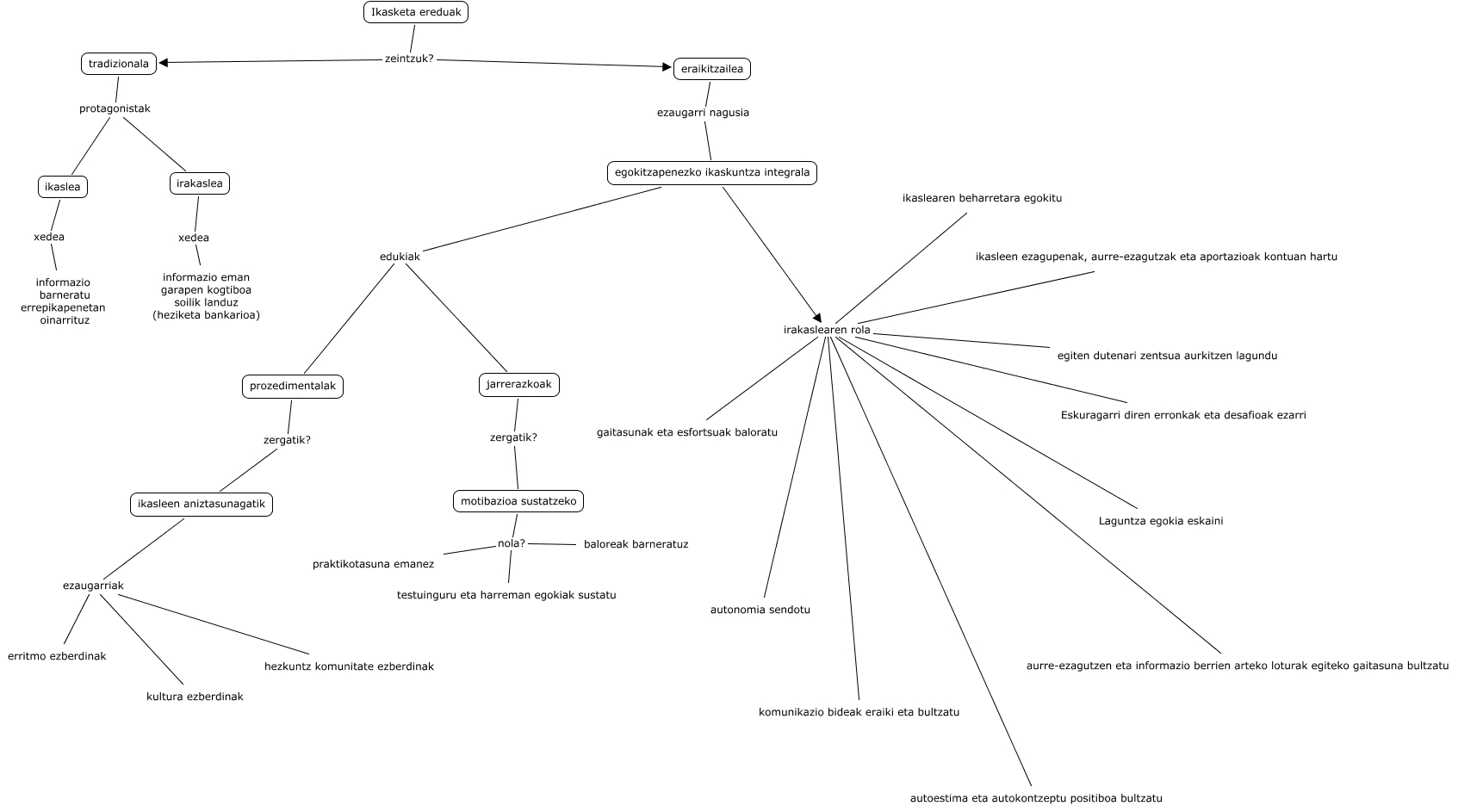 This Concept Map has information related to: 4. kapitulua (Iñigo Murgiondo, Iñigo Madrazo, Iñaki Olaetxea), prozedimentalak zergatik? ikasleen aniztasunagatik, ikasleen aniztasunagatik ezaugarriak erritmo ezberdinak, egokitzapenezko ikaskuntza integrala irakaslearen rola Eskuragarri diren erronkak eta desafioak ezarri, ikasleen aniztasunagatik ezaugarriak kultura ezberdinak, egokitzapenezko ikaskuntza integrala irakaslearen rola Laguntza egokia eskaini, egokitzapenezko ikaskuntza integrala irakaslearen rola egiten dutenari zentsua aurkitzen lagundu, egokitzapenezko ikaskuntza integrala irakaslearen rola gaitasunak eta esfortsuak baloratu, egokitzapenezko ikaskuntza integrala irakaslearen rola autoestima eta autokontzeptu positiboa bultzatu, jarrerazkoak zergatik? motibazioa sustatzeko, motibazioa sustatzeko nola? praktikotasuna emanez