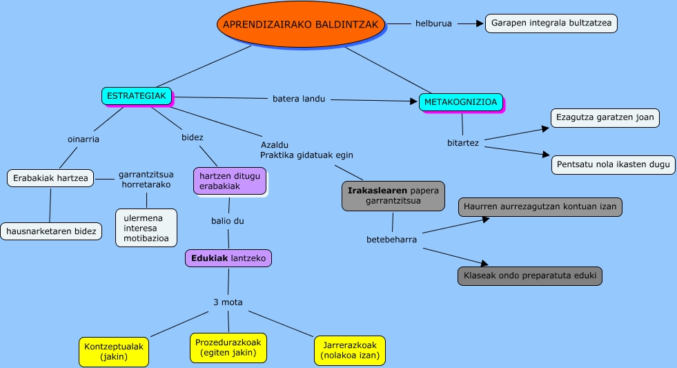 Este Cmap, tiene información relacionada con: JonLiernimaria (Aprendizairako baldintzak), Erabakiak hartzea ???? hausnarketaren bidez, Irakaslearen papera garrantzitsua betebeharra Klaseak ondo preparatuta eduki, ESTRATEGIAK oinarria Erabakiak hartzea, ESTRATEGIAK Azaldu Praktika gidatuak egin Irakaslearen papera garrantzitsua, hartzen ditugu erabakiak balio du Edukiak lantzeko, METAKOGNIZIOA bitartez Ezagutza garatzen joan, ESTRATEGIAK bidez hartzen ditugu erabakiak, Edukiak lantzeko 3 mota Kontzeptualak (jakin), APRENDIZAIRAKO BALDINTZAK helburua Garapen integrala bultzatzea, APRENDIZAIRAKO BALDINTZAK ???? METAKOGNIZIOA, Edukiak lantzeko 3 mota Prozedurazkoak (egiten jakin), Irakaslearen papera garrantzitsua betebeharra Haurren aurrezagutzan kontuan izan, Erabakiak hartzea garrantzitsua horretarako ulermena interesa motibazioa, METAKOGNIZIOA bitartez Pentsatu nola ikasten dugu, Edukiak lantzeko 3 mota Jarrerazkoak (nolakoa izan), APRENDIZAIRAKO BALDINTZAK ???? ESTRATEGIAK, ESTRATEGIAK batera landu METAKOGNIZIOA