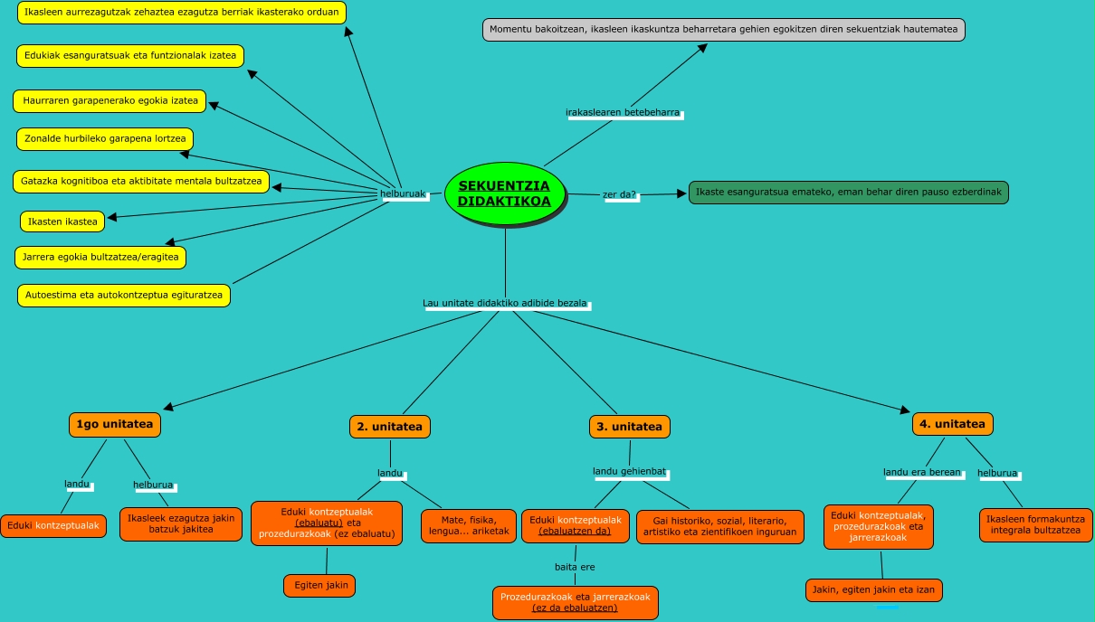 Este Cmap, tiene información relacionada con: Jon jone amets iñigo, SEKUENTZIA DIDAKTIKOA Lau unitate didaktiko adibide bezala 1go unitatea, Eduki kontzeptualak (ebaluatu) eta prozedurazkoak (ez ebaluatu) ???? Egiten jakin, 3. unitatea landu gehienbat Eduki kontzeptualak (ebaluatzen da), SEKUENTZIA DIDAKTIKOA helburuak Zonalde hurbileko garapena lortzea, 3. unitatea landu gehienbat Gai historiko, sozial, literario, artistiko eta zientifikoen inguruan, Eduki kontzeptualak (ebaluatzen da) baita ere Prozedurazkoak eta jarrerazkoak (ez da ebaluatzen), SEKUENTZIA DIDAKTIKOA Lau unitate didaktiko adibide bezala 4. unitatea, SEKUENTZIA DIDAKTIKOA helburuak Jarrera egokia bultzatzea/eragitea, SEKUENTZIA DIDAKTIKOA helburuak Autoestima eta autokontzeptua egituratzea, 4. unitatea helburua Ikasleen formakuntza integrala bultzatzea, 4. unitatea landu era berean Eduki kontzeptualak, prozedurazkoak eta jarrerazkoak, SEKUENTZIA DIDAKTIKOA helburuak Haurraren garapenerako egokia izatea, 2. unitatea landu Mate, fisika, lengua... ariketak, SEKUENTZIA DIDAKTIKOA irakaslearen betebeharra Momentu bakoitzean, ikasleen ikaskuntza beharretara gehien egokitzen diren sekuentziak hautematea, 1go unitatea landu Eduki kontzeptualak, SEKUENTZIA DIDAKTIKOA helburuak Edukiak esanguratsuak eta funtzionalak izatea, Eduki kontzeptualak, prozedurazkoak eta jarrerazkoak ???? Jakin, egiten jakin eta izan, SEKUENTZIA DIDAKTIKOA zer da? Ikaste esanguratsua emateko, eman behar diren pauso ezberdinak, 1go unitatea helburua Ikasleek ezagutza jakin batzuk jakitea, SEKUENTZIA DIDAKTIKOA Lau unitate didaktiko adibide bezala 3. unitatea