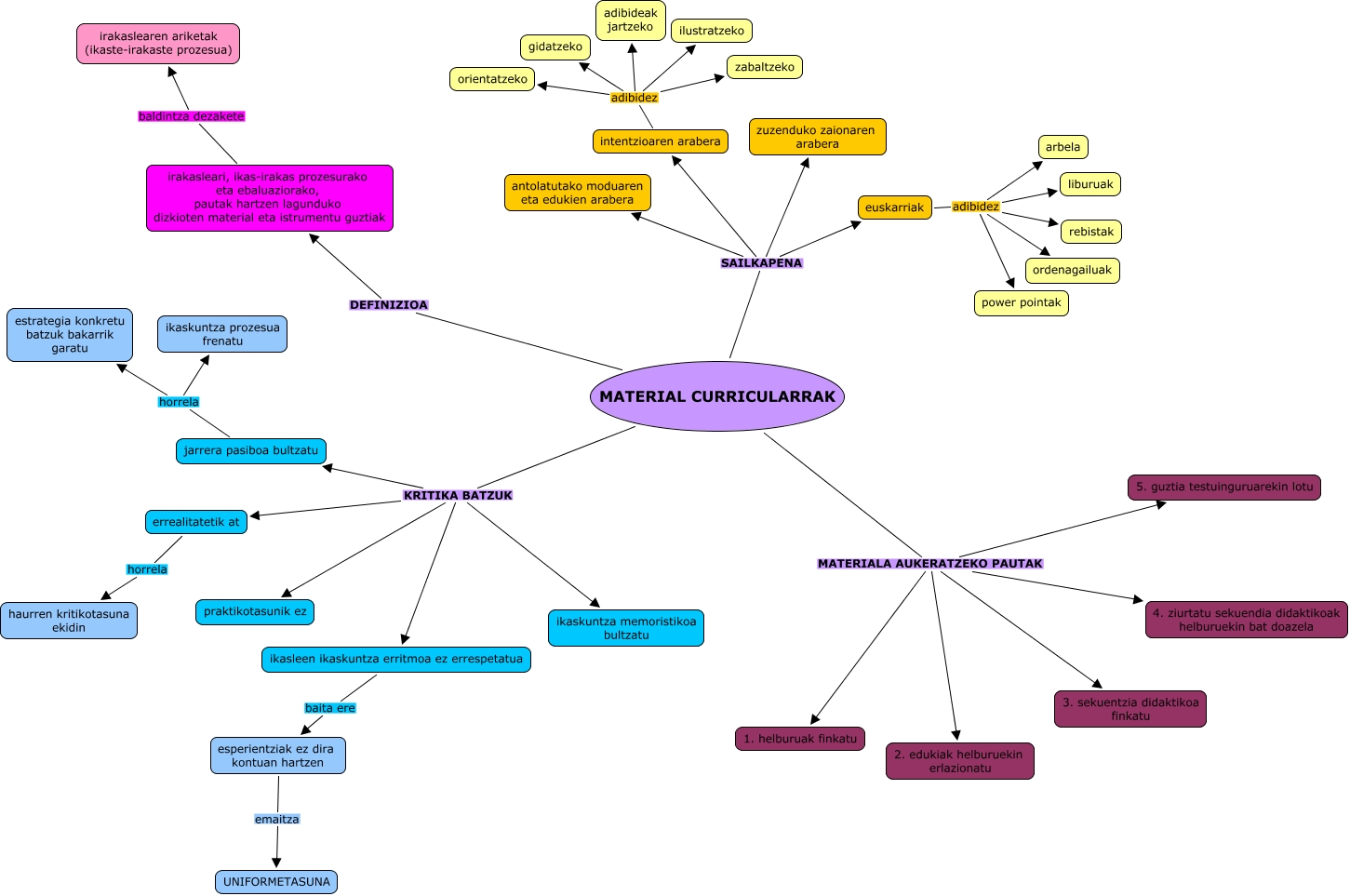 Este Cmap, tiene información relacionada con: lore, xeber, haizea, asier, MATERIAL CURRICULARRAK MATERIALA AUKERATZEKO PAUTAK 2. edukiak helburuekin erlazionatu, MATERIAL CURRICULARRAK SAILKAPENA zuzenduko zaionaren arabera, euskarriak adibidez power pointak, MATERIAL CURRICULARRAK KRITIKA BATZUK ikaskuntza memoristikoa bultzatu, esperientziak ez dira kontuan hartzen emaitza UNIFORMETASUNA, MATERIAL CURRICULARRAK MATERIALA AUKERATZEKO PAUTAK 1. helburuak finkatu, irakasleari, ikas-irakas prozesurako eta ebaluaziorako, pautak hartzen lagunduko dizkioten material eta istrumentu guztiak baldintza dezakete irakaslearen ariketak (ikaste-irakaste prozesua), MATERIAL CURRICULARRAK DEFINIZIOA irakasleari, ikas-irakas prozesurako eta ebaluaziorako, pautak hartzen lagunduko dizkioten material eta istrumentu guztiak, ikasleen ikaskuntza erritmoa ez errespetatua baita ere esperientziak ez dira kontuan hartzen, MATERIAL CURRICULARRAK MATERIALA AUKERATZEKO PAUTAK 4. ziurtatu sekuendia didaktikoak helburuekin bat doazela, errealitatetik at horrela haurren kritikotasuna ekidin, intentzioaren arabera adibidez adibideak jartzeko, euskarriak adibidez liburuak, MATERIAL CURRICULARRAK KRITIKA BATZUK praktikotasunik ez, MATERIAL CURRICULARRAK MATERIALA AUKERATZEKO PAUTAK 5. guztia testuinguruarekin lotu, MATERIAL CURRICULARRAK SAILKAPENA euskarriak, intentzioaren arabera adibidez ilustratzeko, MATERIAL CURRICULARRAK MATERIALA AUKERATZEKO PAUTAK 3. sekuentzia didaktikoa finkatu, jarrera pasiboa bultzatu horrela estrategia konkretu batzuk bakarrik garatu, MATERIAL CURRICULARRAK SAILKAPENA antolatutako moduaren eta edukien arabera
