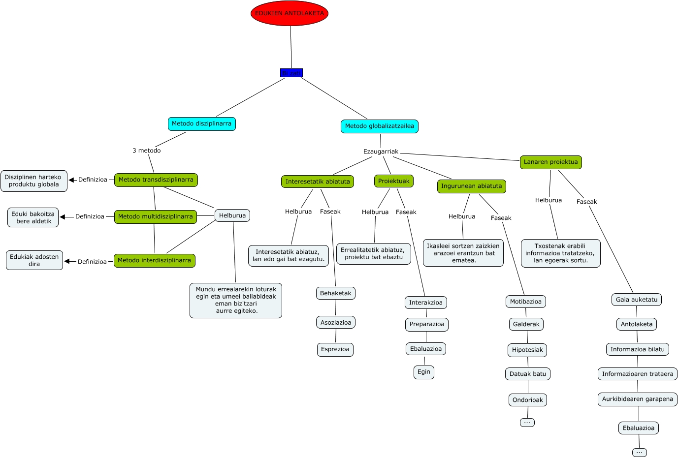 Este Cmap, tiene información relacionada con: t3.5 edukien antolaketa, Metodo globalizatzailea Ezaugarriak Interesetatik abiatuta, Datuak batu ???? Ondorioak, Informazioa bilatu ???? Informazioaren trataera, Lanaren proiektua Ezaugarriak Proiektuak, Helburua ???? Metodo interdisziplinarra, Metodo interdisziplinarra Definizioa Edukiak adosten dira, Ondorioak ???? ..., Bi zati ???? Metodo globalizatzailea, Ebaluazioa ???? ..., Motibazioa ???? Galderak, Bi zati ???? Metodo disziplinarra, Metodo globalizatzailea Ezaugarriak Ingurunean abiatuta, Metodo multidisziplinarra Definizioa Eduki bakoitza bere aldetik, Helburua ???? Metodo multidisziplinarra, Informazioaren trataera ???? Aurkibidearen garapena, Behaketak ???? Asoziazioa, Metodo multidisziplinarra ???? Metodo interdisziplinarra, Preparazioa ???? Ebaluazioa, Metodo transdisziplinarra ???? Helburua, Proiektuak Helburua Errealitatetik abiatuz, proiektu bat ebaztu