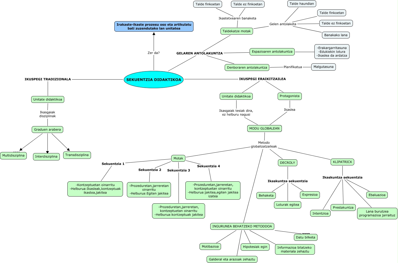 Este Cmap, tiene información relacionada con: 2 KASUA(Lierni,Maria M,Maria L eta Janire), Taldekatze motak Ikastetxearen banaketa Talde finkoetan, Protagonista Ikaslea MODU GLOBALEAN, Motak Sekuentzia 2 -Prozeduretan,jarreretan oinarritu -Helburua:Egiten jakitea, Taldekatze motak Gelen antolaketa Talde haundian, INGURUNEA BEHATZEKO METODDOA ???? Hipotesiak egin, MODU GLOBALEAN Metodo globalizatzaileak KLIPATRICK, KLIPATRICK Ikaskuntza sekuentzia Prestakuntza, Motak Sekuentzia 1 -Kontzeptuetan oinarritu -Helburua:Ikasleak,kontzeptuak ikastea,jakitea, Graduen arabera ???? Transdisziplina, Taldekatze motak Ikastetxearen banaketa Talde ez finkoetan, SEKUENTZIA DIDAKTIKOA IKUSPEGI ERAIKITZAILEA Unitate didaktikoa, MODU GLOBALEAN Metodo globalizatzaileak Motak, INGURUNEA BEHATZEKO METODDOA ???? Informazioa bilatzeko materiala zehaztu, Taldekatze motak Gelen antolaketa Talde ez finkoetan, DECROLY Ikaskuntza sekuentzia Behaketa, Denboraren antolakuntza Planifikatua Malgutasuna, KLIPATRICK Ikaskuntza sekuentzia Ebaluazioa, Graduen arabera ???? Interdisziplina, INGURUNEA BEHATZEKO METODDOA ???? Motibazioa, Unitate didaktikoa Ikasgaiak tesiak dira, ez helburu nagusi MODU GLOBALEAN