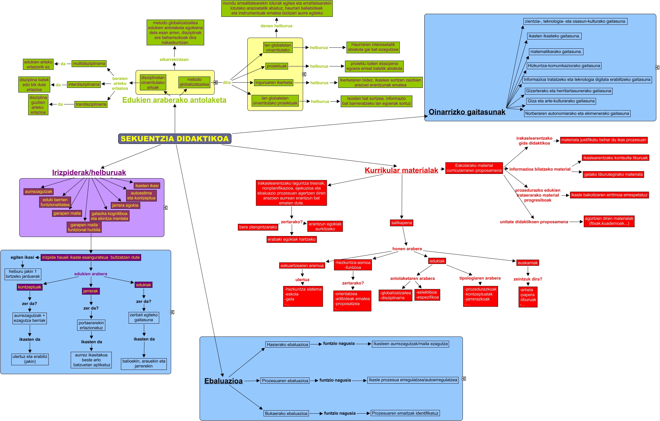 Este Cmap, tiene información relacionada con: sekuentzia didaktikoa, ???? elkarrekintzan metodo globalizatzailea edukien antolaketa egokiena dela esan arren, disziplinak ere beharrezkoak dira irakaskuntzan., ???? denen helburua mundu errealitatearekin loturak egitea eta erralitatearekin lotutako arazoetatik abiatuz, haurrari baliabideak eta instrumentuak ematea bizitzari aurre egiteko, SEKUENTZIA DIDAKTIKOA Irizpiderak/helburuak ikasten ikasi, disziplinetan oinarritutako arloak beraien arteko erlazioa trandisziplinarra, SEKUENTZIA DIDAKTIKOA Ebaluazioa Prozesuaren ebaluazioa, edukiak antolaketaren arabera -selektiboa -espezifikoa, SEKUENTZIA DIDAKTIKOA Oinarrizko gaitasunak Norberaren autonomiarako eta ekimenerako gaitasuna, inguruaren ikerketa helburua Ikerketaren bidez, ikasleei sortzen zaizkien arazoei erantzunak ematea, Eskolarako material curricularraren proposamena unitate didaktikoen proposamena agortzen diren materialak (fitxak,kuadernoak...), ???? ???? irizpide hauek ikaste esanguratsua bultzatzen dute, portaerarekin erlazionatuz ikasten da aurrez ikasitakoa beste arlo batzuetan aplikatuz, irakaslearentzako laguntza tresnak, nonplanifikazioa, ejekuzioa eta ebaluazio prozesuan agertzen diren arazoen aurrean erantzun bat ematen dute. zertarako? erabaki egokiak hartzeko, jarrerak zer da? portaerarekin erlazionatuz, SEKUENTZIA DIDAKTIKOA Kurrikular materialak sailkapena, eskuartzearen eremua ulertuz -hezkuntza sistema -eskola -gela -..., Prozesuaren ebaluazioa funtzio nagusia Ikasle prozesua erregulatzea/autoerregulatzea, SEKUENTZIA DIDAKTIKOA Irizpiderak/helburuak aurrezagutzak, disziplinetan oinarritutako arloak beraien arteko erlazioa interdisziplinarra, SEKUENTZIA DIDAKTIKOA Ebaluazioa Bukaerako ebaluazioa, SEKUENTZIA DIDAKTIKOA Oinarrizko gaitasunak matematikarako gaitasuna.