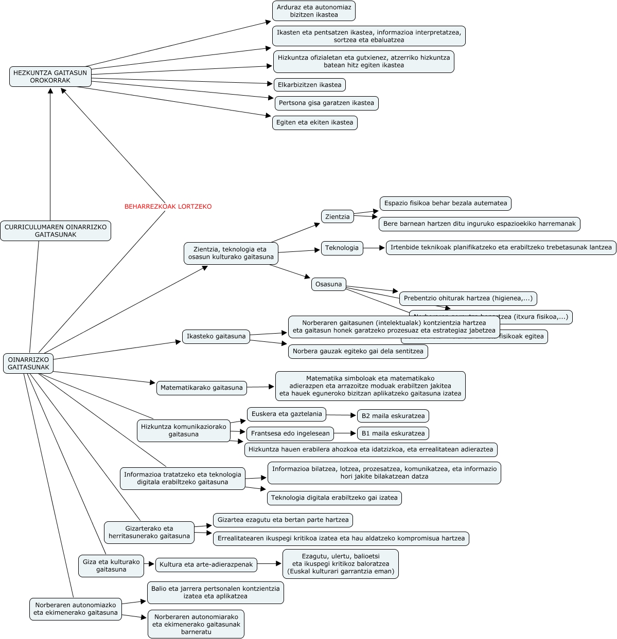 This Concept Map has information related to: Oinarrizko gaitasunak (aritz, egoitz, alfonso, arkaitz, axier), Ikasteko gaitasuna ???? Norbera gauzak egiteko gai dela sentitzea, Informazioa tratatzeko eta teknologia digitala erabiltzeko gaitasuna ???? Teknologia digitala erabiltzeko gai izatea, Ikasteko gaitasuna ???? Norberaren gaitasunen (intelektualak) kontzientzia hartzea eta gaitasun honek garatzeko prozesuaz eta estrategiaz jabetzea, OINARRIZKO GAITASUNAK ???? Gizarterako eta herritasunerako gaitasuna, Matematikarako gaitasuna ???? Matematika simboloak eta matematikako adierazpen eta arrazoitze moduak erabiltzen jakitea eta hauek eguneroko bizitzan aplikatzeko gaitasuna izatea, OINARRIZKO GAITASUNAK ???? Informazioa tratatzeko eta teknologia digitala erabiltzeko gaitasuna, Informazioa tratatzeko eta teknologia digitala erabiltzeko gaitasuna ???? Informazioa bilatzea, lotzea, prozesatzea, komunikatzea, eta informazio hori jakite bilakatzean datza, HEZKUNTZA GAITASUN OROKORRAK ???? Egiten eta ekiten ikastea, OINARRIZKO GAITASUNAK ???? Matematikarako gaitasuna, Kultura eta arte-adierazpenak ???? Ezagutu, ulertu, balioetsi eta ikuspegi kritikoz baloratzea (Euskal kulturari garrantzia eman)