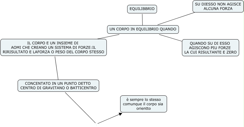 Questa Mappa Concettuale ha informazioni correlate a: equilibrio, UN CORPO IN EQUILIBRIO QUANDO ???? IL CORPO E UN INSIEME DI AOMI CHE CREANO UN SISTEMA DI FORZE:IL RIRISULTATO E LAFORZA O PESO DEL CORPO STESSO, UN CORPO IN EQUILIBRIO QUANDO ???? SU DIESSO NON AGISCE ALCUNA FORZA, IL CORPO E UN INSIEME DI AOMI CHE CREANO UN SISTEMA DI FORZE:IL RIRISULTATO E LAFORZA O PESO DEL CORPO STESSO ???? CONCENTATO IN UN PUNTO DETTO CENTRO DI GRAVITANO O BATTICENTRO, UN CORPO IN EQUILIBRIO QUANDO ???? QUANDO SU DI ESSO AGISCONO PIU FORZE LA CUI RISULTANTE E ZERO, EQUILIBBRIO ???? UN CORPO IN EQUILIBRIO QUANDO, CONCENTATO IN UN PUNTO DETTO CENTRO DI GRAVITANO O BATTICENTRO è sempre lo stesso comunque il corpo sia orientto