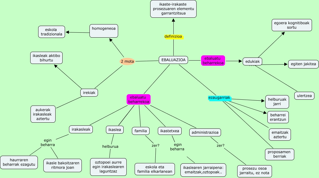 Este Cmap, tiene información relacionada con: T.3.6 Iosu, Andoni eta Iban(ebaluazioa), EBALUAZIOA 2 mota irekiak, EBALUAZIOA ebaluatu beharrekoa edukiak, ikaslea ebaluatu beharrekoa ikastetxea, EBALUAZIOA ebaluatu beharrekoa ikaslea, EBALUAZIOA definizioa ikaste-irakaste prosezuaren elementu garrantzitsua, edukiak ???? egoera kognitiboak sortu, EBALUAZIOA ebaluatu beharrekoa ikastetxea, ikaslea helburua oztopoei aurre egin irakaslearen laguntzaz, EBALUAZIOA ebaluatu beharrekoa familia, EBALUAZIOA ezaugarriak beharrei erantzun, EBALUAZIOA ezaugarriak emaitzak aztertu, familia zer? eskola eta familia elkarlanean, ikaslea ebaluatu beharrekoa administrazioa, irakasleak egin beharra ikasle bakoitzaren ritmora joan, EBALUAZIOA ebaluatu beharrekoa irakasleak, edukiak ???? egiten jakitea, EBALUAZIOA ezaugarriak helburuak jarri, irakasleak egin beharra haurraren beharrak ezagutu, EBALUAZIOA ezaugarriak proposamen berriak, homogeneoa ???? eskola tradizionala