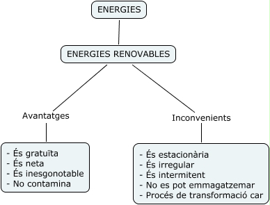 Este Cmap, tiene información relacionada con: Energies 1, ENERGIES RENOVABLES Inconvenients - És estacionària - És irregular - És intermitent - No es pot emmagatzemar - Procés de transformació car, ENERGIES RENOVABLES Avantatges - És gratuïta - És neta - És inesgonotable - No contamina, ENERGIES ENERGIES RENOVABLES