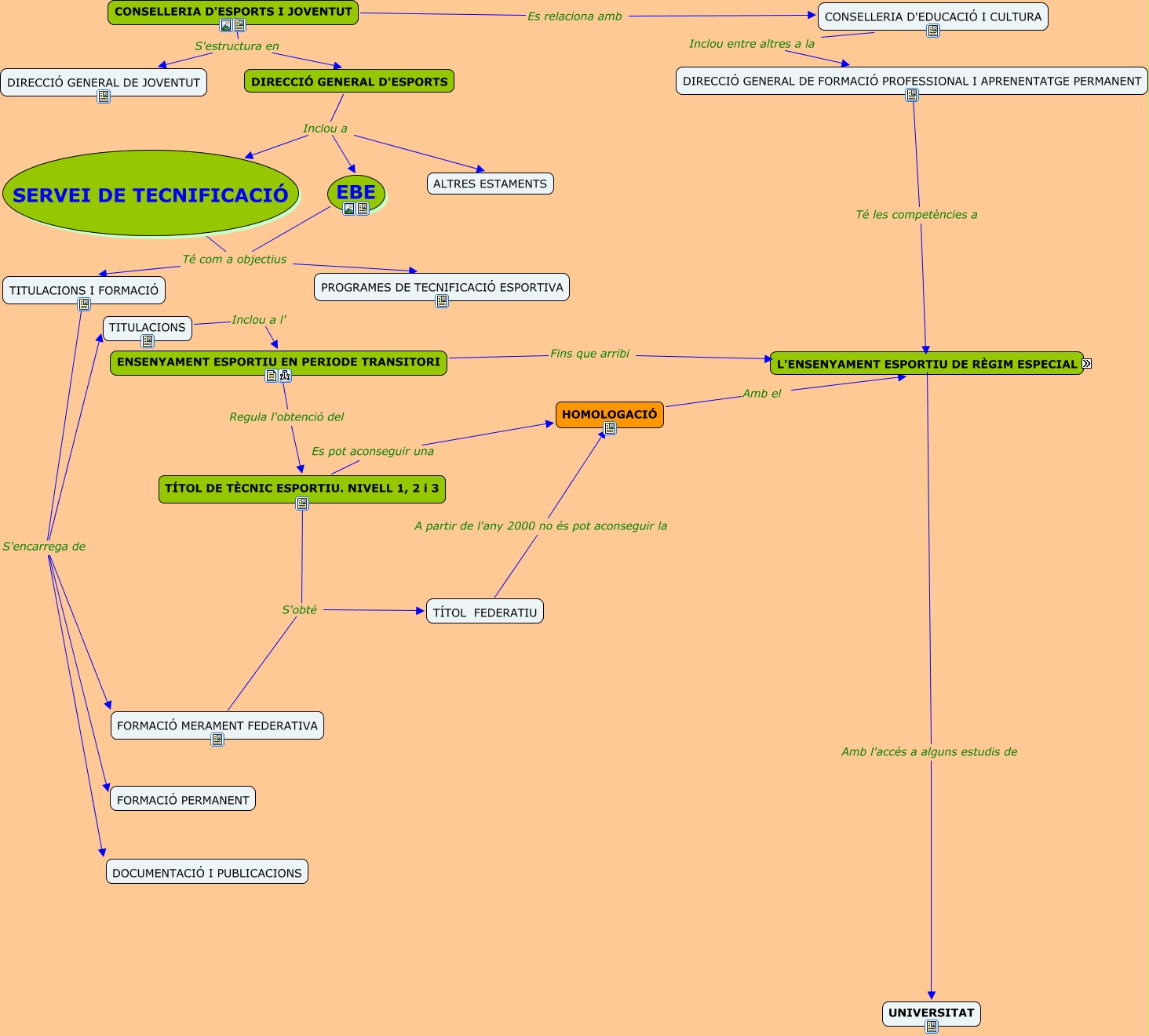Este Cmap, tiene información relacionada con: Titulacions i formació curs 2, DIRECCIÓ GENERAL DE FORMACIÓ PROFESSIONAL I APRENENTATGE PERMANENT Té les competències a L'ENSENYAMENT ESPORTIU DE RÈGIM ESPECIAL, TÍTOL FEDERATIU A partir de l'any 2000 no és pot aconseguir la HOMOLOGACIÓ, HOMOLOGACIÓ Amb el L'ENSENYAMENT ESPORTIU DE RÈGIM ESPECIAL, TÍTOL DE TÈCNIC ESPORTIU. NIVELL 1, 2 i 3 S'obté TÍTOL FEDERATIU, L'ENSENYAMENT ESPORTIU DE RÈGIM ESPECIAL Per l'obtenció del TÍTOL DE TÈCNIC ESPORTIU. GRAU SUPERIOR, TITULACIONS I FORMACIÓ S'encarrega de TITULACIONS, CONSELLERIA D'ESPORTS I JOVENTUT S'estructura en DIRECCIÓ GENERAL D'ESPORTS, TÍTOL DE TÈCNIC ESPORTIU. GRAU SUPERIOR Amb l'accés a alguns estudis de UNIVERSITAT, SERVEI DE TECNIFICACIÓ Té com a objectius TITULACIONS I FORMACIÓ, TITULACIONS I FORMACIÓ S'encarrega de DOCUMENTACIÓ I PUBLICACIONS, DIRECCIÓ GENERAL D'ESPORTS Inclou a ALTRES ESTAMENTS, DIRECCIÓ GENERAL D'ESPORTS Inclou a EBE, TITULACIONS Inclou a l' ENSENYAMENT ESPORTIU EN PERIODE TRANSITORI, CONSELLERIA D'EDUCACIÓ I CULTURA Inclou entre altres a la DIRECCIÓ GENERAL DE FORMACIÓ PROFESSIONAL I APRENENTATGE PERMANENT, CONSELLERIA D'ESPORTS I JOVENTUT S'estructura en DIRECCIÓ GENERAL DE JOVENTUT, TITULACIONS I FORMACIÓ S'encarrega de FORMACIÓ MERAMENT FEDERATIVA, L'ENSENYAMENT ESPORTIU DE RÈGIM ESPECIAL Per l'obtenció del TÍTOL DE TÈCNIC ESPORTIU. GRAU MITJÀ, FORMACIÓ MERAMENT FEDERATIVA S'obté TÍTOL FEDERATIU, ENSENYAMENT ESPORTIU EN PERIODE TRANSITORI Fins que arribi L'ENSENYAMENT ESPORTIU DE RÈGIM ESPECIAL, EBE Té com a objectius TITULACIONS I FORMACIÓ