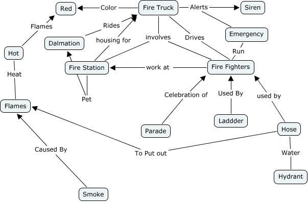 This Concept Map, created with IHMC CmapTools, has information related to: Fire Truck, Dalmation Rides Fire Truck, Hot Heat Flames, Fire Truck involves Fire Station, Fire Truck Drives Fire Fighters, Hot Flames Red, Fire Truck Color Red, Fire Truck involves Fire Fighters, Emergency Run Fire Fighters, Fire Truck Alerts Siren, Laddder Used By Fire Fighters, Fire Fighters work at Fire Station, Fire Station housing for Fire Truck, Parade Celebration of Fire Fighters, Hose used by Fire Fighters, Emergency Alerts Siren, Smoke Caused By Flames, Hose To Put out Flames, Fire Station Pet Dalmation, Hose Water Hydrant