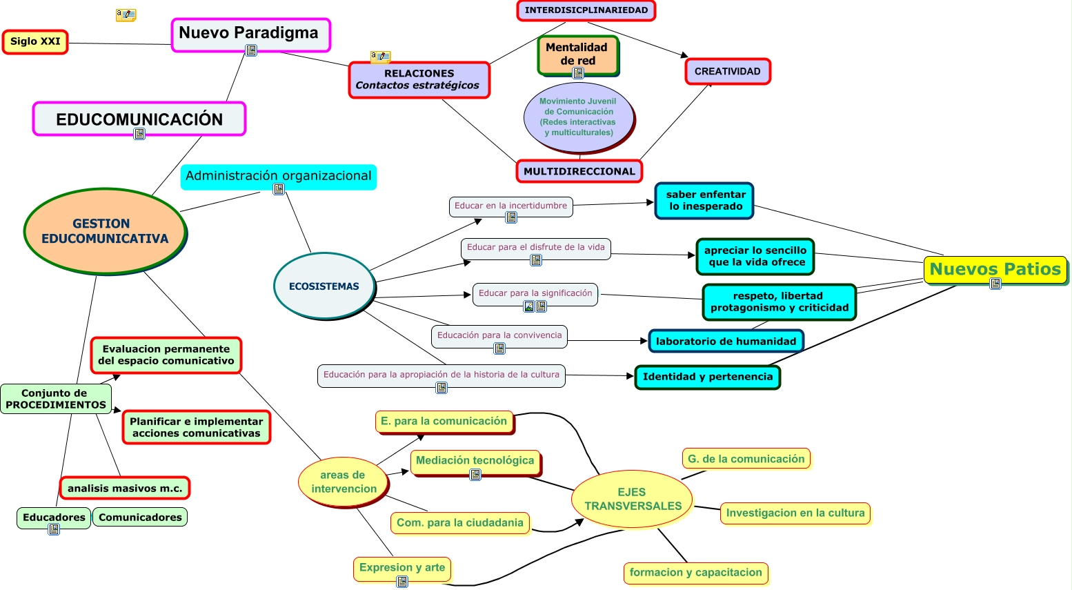 Este Cmap, tiene información relacionada con: Mapa gestion-grupo uno, ???? ???? EJES TRANSVERSALES, RELACIONES Contactos estratégicos ???? Nuevo Paradigma, MULTIDIRECCIONAL ???? ????, Nuevos Patios ???? saber enfentar lo inesperado, ECOSISTEMAS ???? Educación para la convivencia, Conjunto de PROCEDIMIENTOS ???? Evaluacion permanente del espacio comunicativo, INTERDISICPLINARIEDAD ???? RELACIONES Contactos estratégicos, Educación para la convivencia ???? laboratorio de humanidad, Educar en la incertidumbre ???? saber enfentar lo inesperado, INTERDISICPLINARIEDAD ???? CREATIVIDAD, Com. para la ciudadania ???? EJES TRANSVERSALES, areas de intervencion ???? Expresion y arte, GESTION EDUCOMUNICATIVA ???? Conjunto de PROCEDIMIENTOS, EJES TRANSVERSALES ???? formacion y capacitacion, ECOSISTEMAS ???? Educar para el disfrute de la vida, GESTION EDUCOMUNICATIVA ???? areas de intervencion, Mediación tecnológica ???? EJES TRANSVERSALES, areas de intervencion ???? E. para la comunicación, Educar para el disfrute de la vida ???? apreciar lo sencillo que la vida ofrece, Nuevo Paradigma ???? ????