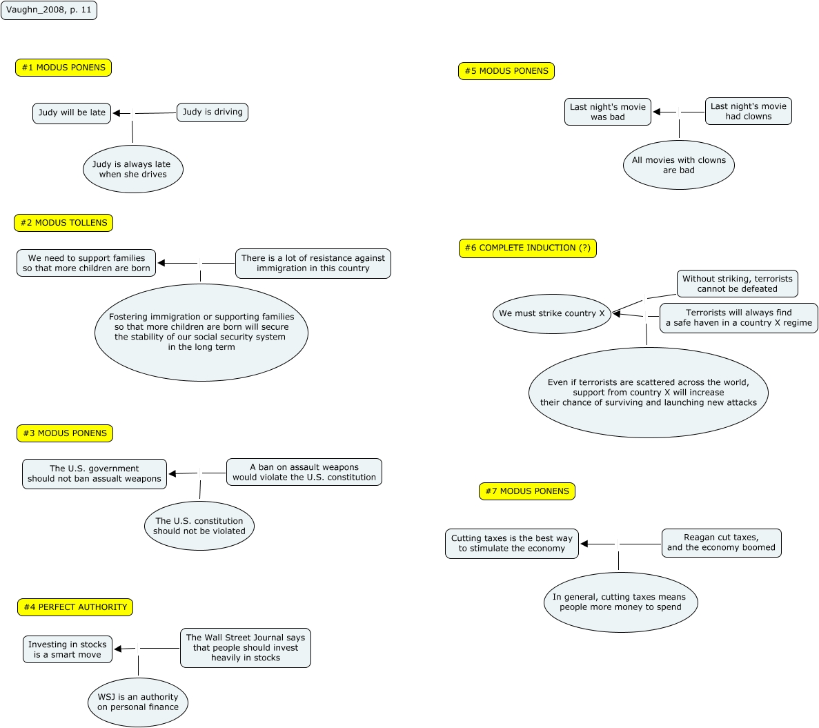 This Concept Map, created with IHMC CmapTools, has information related to: Ex. p.11-simplest, A ban on assault weapons would violate the U.S. constitution The U.S. government should not ban assualt weapons, The Wall Street Journal says that people should invest heavily in stocks Investing in stocks is a smart move, Judy is always late when she drives Judy will be late, Last night's movie had clowns Last night's movie was bad, In general, cutting taxes means people more money to spend Cutting taxes is the best way to stimulate the economy, There is a lot of resistance against immigration in this country We need to support families so that more children are born, Fostering immigration or supporting families so that more children are born will secure the stability of our social security system in the long term We need to support families so that more children are born, All movies with clowns are bad Last night's movie was bad, WSJ is an authority on personal finance Investing in stocks is a smart move, Even if terrorists are scattered across the world, support from country X will increase their chance of surviving and launching new attacks We must strike country X, Without striking, terrorists cannot be defeated We must strike country X, The U.S. constitution should not be violated The U.S. government should not ban assualt weapons, Judy is driving Judy will be late, Reagan cut taxes, and the economy boomed Cutting taxes is the best way to stimulate the economy, Terrorists will always find a safe haven in a country X regime We must strike country X