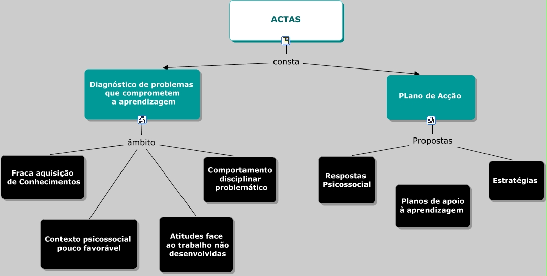 Esse mapa conceitual, produzido no IHMC CmapTools, tem a informação relacionada a: 3º Ciclo - Actas - Justificação dos Níveis Inferiores a 3 - 20082009_1, PLano de Acção Propostas Respostas Psicossocial, Diagnóstico de problemas que comprometem a aprendizagem âmbito Fraca aquisição de Conhecimentos, PLano de Acção Propostas Estratégias, PLano de Acção Propostas Planos de apoio à aprendizagem, Diagnóstico de problemas que comprometem a aprendizagem âmbito Atitudes face ao trabalho não desenvolvidas, Diagnóstico de problemas que comprometem a aprendizagem âmbito Comportamento disciplinar problemático, Diagnóstico de problemas que comprometem a aprendizagem âmbito Contexto psicossocial pouco favorável, ACTAS consta PLano de Acção, ACTAS consta Diagnóstico de problemas que comprometem a aprendizagem