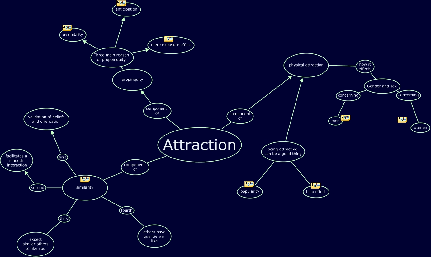 This Concept Map, created with IHMC CmapTools, has information related to: Attraction, Gender and sex concerning women, similarity third expect similar others to like you, propinquity Three main reason of proppinquity anticipation, propinquity Three main reason of proppinquity availability, Gender and sex concerning men, Attraction component of propinquity, halo effect being attractive can be a good thing popularity, similarity second facilitates a smooth interaction, propinquity Three main reason of proppinquity mere exposure effect, Attraction component of physical attraction, similarity first validation of beliefs and orientation, halo effect being attractive can be a good thing physical attraction, physical attraction how it effects Gender and sex, similarity fourth others have qualitie we like, Attraction component of similarity