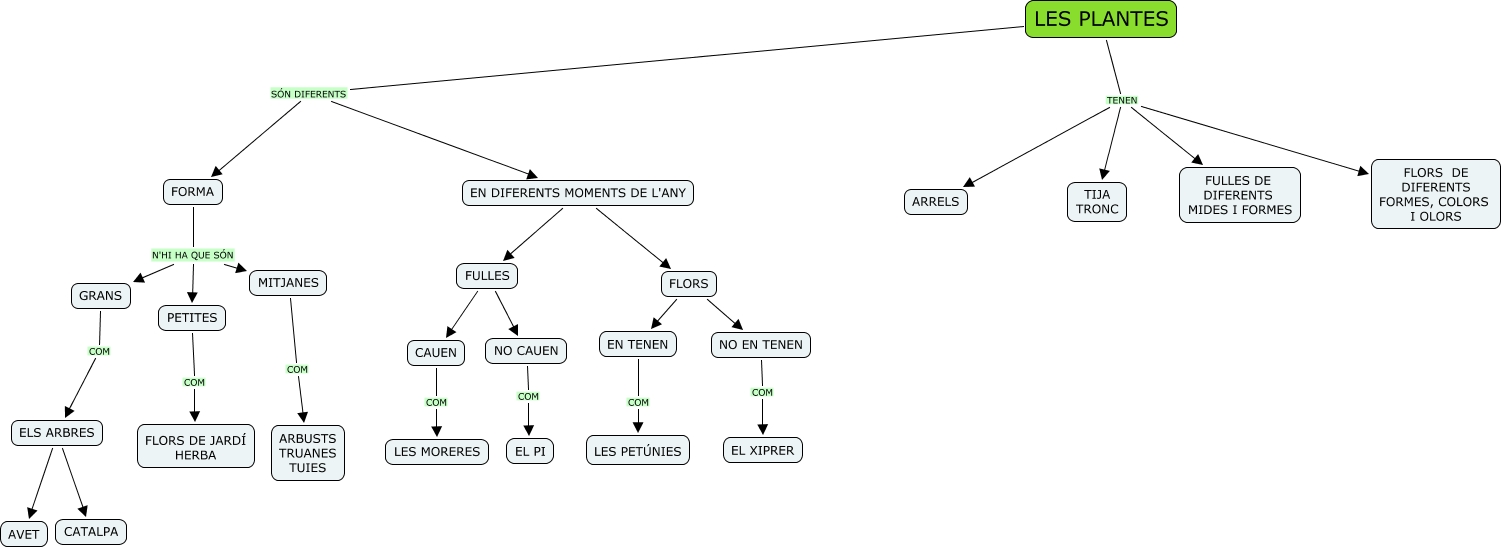 Aquest mapa conceptual conté informació relacionada amb: PLANTES EI, FORMA N'HI HA QUE SÓN MITJANES, CAUEN COM LES MORERES, FORMA N'HI HA QUE SÓN PETITES, ELS ARBRES AVET, LES PLANTES TENEN FLORS DE DIFERENTS FORMES, COLORS I OLORS, LES PLANTES TENEN TIJA TRONC, FULLES CAUEN, EN DIFERENTS MOMENTS DE L'ANY FLORS, FLORS NO EN TENEN, LES PLANTES TENEN ARRELS, GRANS COM ELS ARBRES, LES PLANTES TENEN FULLES DE DIFERENTS MIDES I FORMES, ELS ARBRES CATALPA, EN TENEN COM LES PETÚNIES, FLORS EN TENEN, FORMA N'HI HA QUE SÓN GRANS, LES PLANTES SÓN DIFERENTS EN DIFERENTS MOMENTS DE L'ANY, NO CAUEN COM EL PI, EN DIFERENTS MOMENTS DE L'ANY FULLES, MITJANES COM ARBUSTS TRUANES TUIES