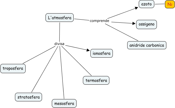 Atmosfera, L'atmosfera divisa troposfera, L'atmosfera divisa mesosfera, L'atmosfera divisa stratosfera, azoto ???? N2, L'atmosfera comprende azoto, L'atmosfera divisa termosfera, L'atmosfera divisa ionosfera, L'atmosfera comprende ossigeno, L'atmosfera comprende anidride carbonica