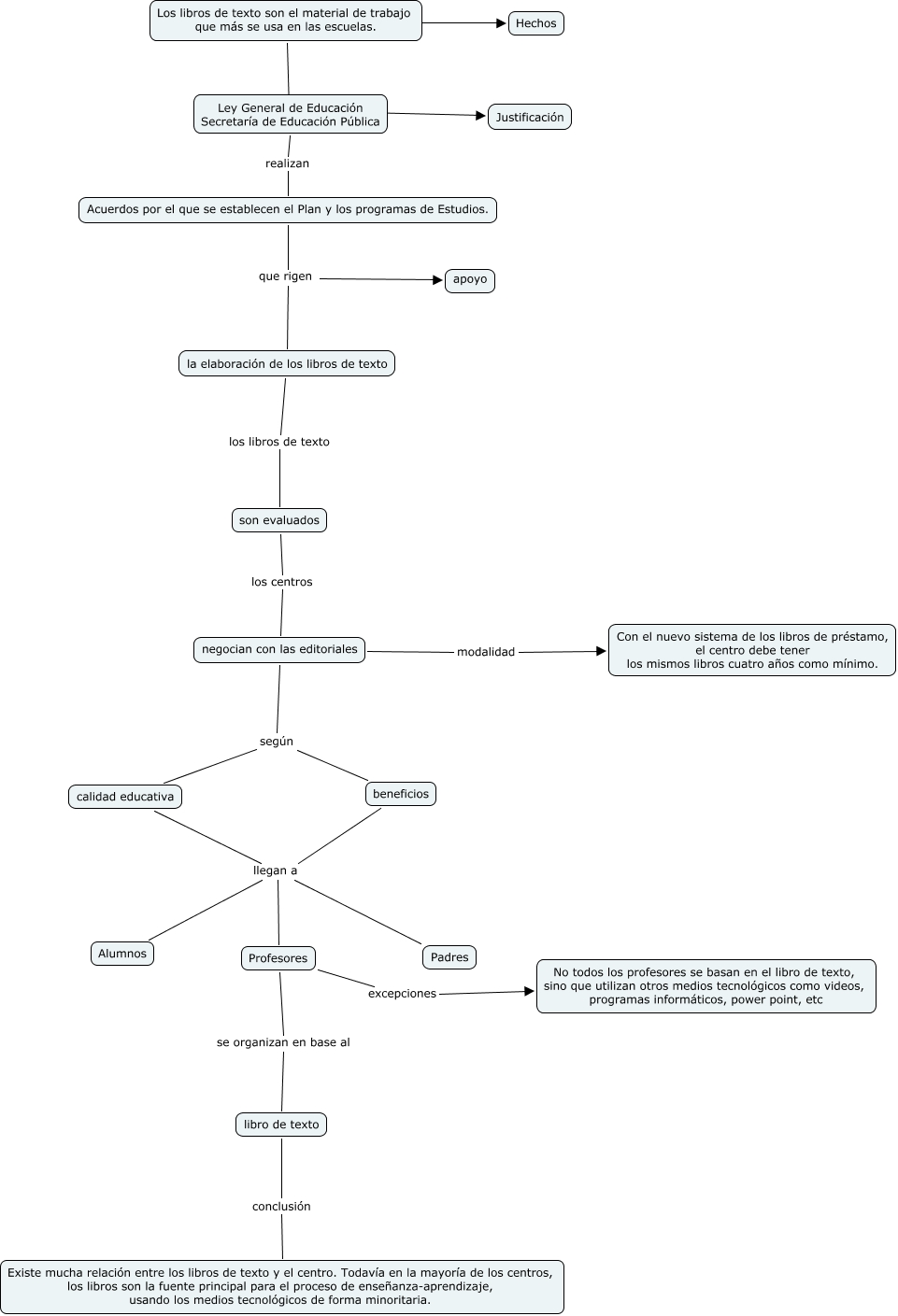 Este Cmap, tiene información relacionada con: HILO libro de texto según corriente CTSE-Aguilar_ Montilla_Eva, Los libros de texto son el material de trabajo que más se usa en las escuelas. ???? Ley General de Educación Secretaría de Educación Pública, Los libros de texto son el material de trabajo que más se usa en las escuelas. ???? Hechos, negocian con las editoriales según beneficios, son evaluados los centros negocian con las editoriales, calidad educativa llegan a Profesores, la elaboración de los libros de texto los libros de texto son evaluados, beneficios llegan a Padres, calidad educativa llegan a Padres, Ley General de Educación Secretaría de Educación Pública ???? Justificación, Profesores excepciones No todos los profesores se basan en el libro de texto, sino que utilizan otros medios tecnológicos como videos, programas informáticos, power point, etc, beneficios llegan a Profesores, libro de texto conclusión Existe mucha relación entre los libros de texto y el centro. Todavía en la mayoría de los centros, los libros son la fuente principal para el proceso de enseñanza-aprendizaje, usando los medios tecnológicos de forma minoritaria., Profesores se organizan en base al libro de texto, Acuerdos por el que se establecen el Plan y los programas de Estudios. que rigen apoyo, negocian con las editoriales modalidad Con el nuevo sistema de los libros de préstamo, el centro debe tener los mismos libros cuatro años como mínimo., negocian con las editoriales según calidad educativa, Acuerdos por el que se establecen el Plan y los programas de Estudios. que rigen la elaboración de los libros de texto, Ley General de Educación Secretaría de Educación Pública realizan Acuerdos por el que se establecen el Plan y los programas de Estudios., calidad educativa llegan a Alumnos, beneficios llegan a Alumnos