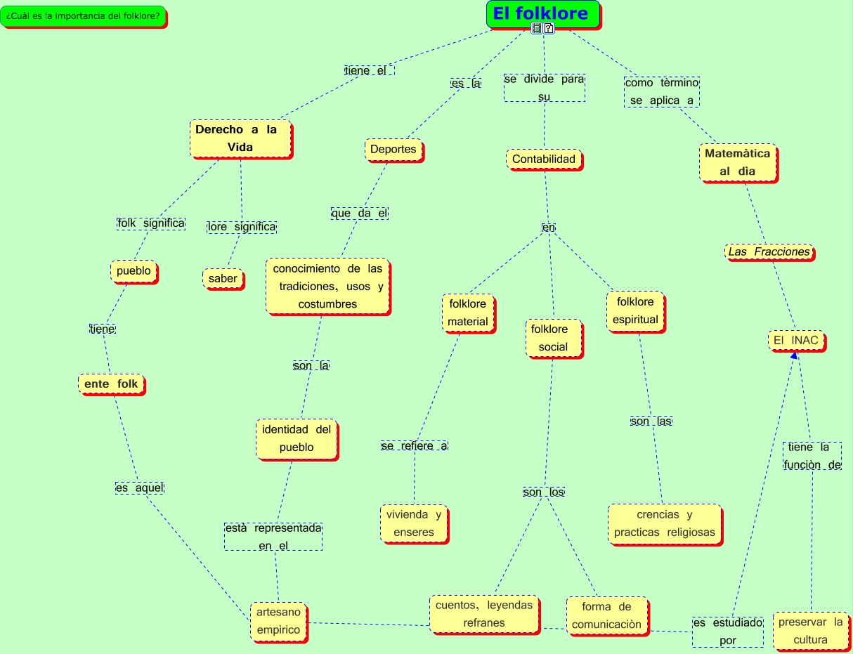Este Cmap, tiene información relacionada con: El folklore de Panamà, Contabilidad en folklore material, Contabilidad en folklore social, El folklore es la Deportes, El folklore como tèrmino se aplica a Matemàtica al dìa, Derecho a la Vida folk significa pueblo, artesano empìrico es estudiado por El INAC, El folklore se divide para su Contabilidad, ente folk es aquel artesano empìrico, El INAC tiene la funciòn de preservar la cultura, folklore material se refiere a vivienda y enseres, Deportes que da el conocimiento de las tradiciones, usos y costumbres, folklore social son los forma de comunicaciòn, El folklore tiene el Derecho a la Vida, folklore social son los cuentos, leyendas refranes, Contabilidad en folklore espiritual, folklore espiritual son las crencias y practicas religiosas, pueblo tiene ente folk, Matemàtica al dìa Las Fracciones El INAC, Derecho a la Vida lore significa saber, conocimiento de las tradiciones, usos y costumbres son la identidad del pueblo