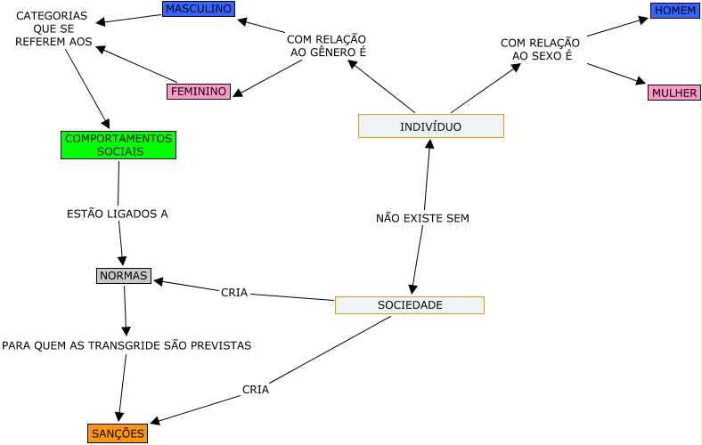 Esse mapa conceitual, produzido no IHMC CmapTools, tem a informação relacionada a: mapa conceitual jonathan, INDIVÍDUO COM RELAÇÃO AO SEXO É MULHER, NORMAS PARA QUEM AS TRANSGRIDE SÃO PREVISTAS SANÇÕES, SOCIEDADE CRIA NORMAS, INDIVÍDUO COM RELAÇÃO AO GÊNERO É MASCULINO, SOCIEDADE CRIA SANÇÕES, INDIVÍDUO COM RELAÇÃO AO SEXO É HOMEM, COMPORTAMENTOS SOCIAIS ESTÃO LIGADOS A NORMAS, INDIVÍDUO COM RELAÇÃO AO GÊNERO É FEMININO, FEMININO CATEGORIAS QUE SE REFEREM AOS COMPORTAMENTOS SOCIAIS, MASCULINO CATEGORIAS QUE SE REFEREM AOS COMPORTAMENTOS SOCIAIS