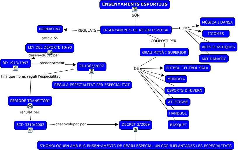 Este Cmap, tiene información relacionada con: ensenyaments esportius, DECRET 2/2009 S'HOMOLOGUEN AMB ELS ENSENYAMENTS DE RÈGIM ESPECIAL UN COP IMPLANTADES LES ESPECIALITATS, ENSENYAMENTS DE RÈGIM ESPECIAL COM MÚSICA I DANSA, ENSENYAMENTS DE RÈGIM ESPECIAL COM ARTS PLÀSTIQUES, ENSENYAMENTS DE RÈGIM ESPECIAL COM ART DAMÀTIC, ENSENYAMENTS DE RÈGIM ESPECIAL COMPOST PER GRAU MITJÀ I SUPERIOR, GRAU MITJÀ I SUPERIOR DE HANDBOL, ENSENYAMENTS DE RÈGIM ESPECIAL REGULATS NORMATIVA, ENSENYAMENTS ESPORTIUS SÓN ENSENYAMENTS DE RÈGIM ESPECIAL, GRAU MITJÀ I SUPERIOR DE FUTBOL I FUTBOL SALA, ECD 3310/2002 desenvolupat per DECRET 2/2009, NORMATIVA article 55 LEY DEL DEPORTE 10/90, ENSENYAMENTS DE RÈGIM ESPECIAL COM IDIOMES, RD1363/2007 fins que no es reguli l'especialitat PERÍODE TRANSITORI, LEY DEL DEPORTE 10/90 desenvolupat per RD 1913/1997, RD 1913/1997 posteriorment RD1363/2007, GRAU MITJÀ I SUPERIOR DE MONTAYA, GRAU MITJÀ I SUPERIOR DE ESPORTS D'HIVERN, PERÍODE TRANSITORI regulat per ECD 3310/2002, GRAU MITJÀ I SUPERIOR DE ATLETISME, RD1363/2007 REGULA ESPECIALITAT PER ESPECIALITAT