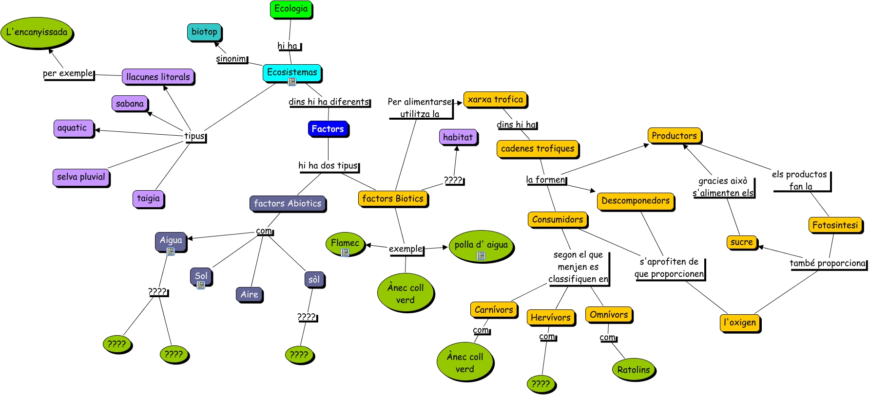 Este Cmap, tiene información relacionada con: Ecologia, Consumidors segon el que menjen es classifiquen en Omnívors, factors Biotics exemple polla d' aigua, factors Abiotics com Sol, factors Biotics exemple Ànec coll verd, Ecosistemas tipus sabana, Ecosistemas tipus aquatic, Consumidors segon el que menjen es classifiquen en Hervívors, Descomponedors s'aprofiten de que proporcionen l'oxigen, cadenes trofiques la formen Consumidors, Factors hi ha dos tipus factors Biotics, Consumidors segon el que menjen es classifiquen en Carnívors, Omnívors com Ratolins, llacunes litorals per exemple L'encanyissada, Fotosintesi també proporciona sucre, Productors els productos fan la Fotosintesi, Ecosistemas tipus selva pluvial, sòl ???? ????, factors Biotics exemple Flamec, Ecologia hi ha Ecosistemas, xarxa trofica dins hi ha cadenes trofiques