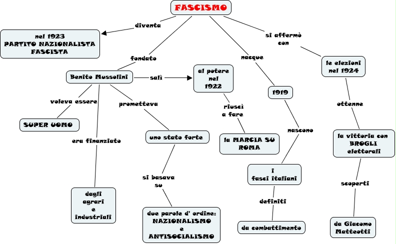 Questa Cmap, creata con IHMC CmapTools, contiene informazioni relative a: fascismomadeovalentina, FASCISMO si affermò con le elezioni nel 1924, Benito Mussolini era finanziato dagli agrari e industriali, FASCISMO nacque 1919, al potere nel 1922 riuscì a fare la MARCIA SU ROMA, uno stato forte si basava su due parole d' ordine: NAZIONALISMO e ANTISOCIALISMO, FASCISMO fondato Benito Mussolini, FASCISMO diventa nel 1923 PARTITO NAZIONALISTA FASCISTA, 1919 nascono i fasci italiani, i fasci italiani definiti da combattimento, Benito Mussolini salì al potere nel 1922, Benito Mussolini prometteva uno stato forte, la vittoria con BROGLI elettorali scoperti da Giacomo Matteotti, le elezioni nel 1924 ottenne la vittoria con BROGLI elettorali, Benito Mussolini voleva essere SUPER UOMO
