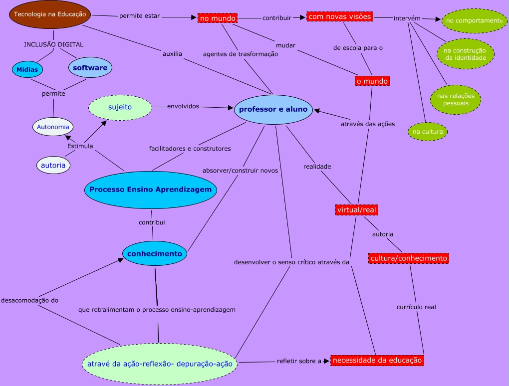 Esse mapa conceitual, produzido no IHMC CmapTools, tem a informação relacionada a: mapa_grupo, atravé da ação-reflexão- depuração-ação refletir sobre a necessidade da educação, Processo Ensino Aprendizagem contribui conhecimento, com novas visões intervém na cultura, sujeito envolvidos professor e aluno, autoria Estimula Autonomia, conhecimento que retralimentam o processo ensino-aprendizagem atravé da ação-reflexão- depuração-ação, professor e aluno absorver/construir novos conhecimento, Tecnologia na Educação auxilia professor e aluno, virtual/real através das ações professor e aluno, com novas visões intervém na construção da identidade, com novas visões intervém no comportamento, conhecimento que retralimentam o processo ensino-aprendizagem atravé da ação-reflexão- depuração-ação, Processo Ensino Aprendizagem Estimula sujeito, conhecimento que retralimentam o processo ensino-aprendizagem atravé da ação-reflexão- depuração-ação, software permite Autonomia, necessidade da educação desenvolver o senso crítico através da atravé da ação-reflexão- depuração-ação, conhecimento que retralimentam o processo ensino-aprendizagem atravé da ação-reflexão- depuração-ação, conhecimento que retralimentam o processo ensino-aprendizagem atravé da ação-reflexão- depuração-ação, conhecimento que retralimentam o processo ensino-aprendizagem atravé da ação-reflexão- depuração-ação, virtual/real autoria cultura/conhecimento