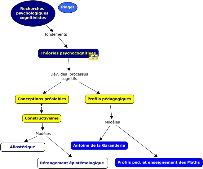 This Concept Map, created with IHMC CmapTools, has information related to: Theo_ psychocognitives, Profils pédagogiques ???? Antoine de la Garanderie, Théories psychocognitives Dév. des processus cognitifs Profils pédagogiques, Recherches psychologiques cognitivistes fondements Théories psychocognitives, Profils pédagogiques Modèles Antoine de la Garanderie, Profils pédagogiques Modèles Profils péd. et enseignement des Maths, Constructivisme Modèles Allostérique, Conceptions préalables I Constructivisme, Constructivisme Modèles Dérangement épistémologique, Théories psychocognitives Dév. des processus cognitifs Conceptions préalables
