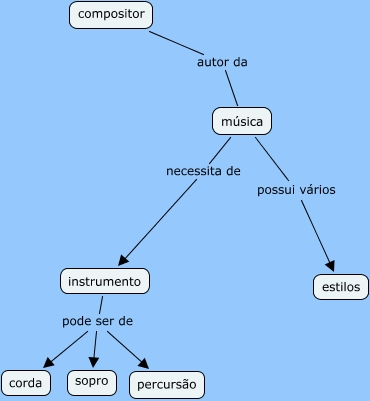 Esse mapa conceitual, produzido no IHMC CmapTools, tem a informação relacionada a: teste_musica, compositor autor da música, música necessita de instrumento, instrumento pode ser de percursão, instrumento pode ser de sopro, instrumento pode ser de corda, música possui vários estilos