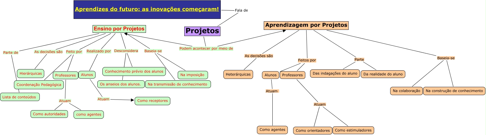 Esse mapa conceitual, produzido no IHMC CmapTools, tem a informação relacionada a: Mapa - Texto Aprender - Grupo Isis e Daniela, Aprendizes do futuro: as inovações começaram! Fala de Projetos, Ensino por Projetos Baseia-se Na transmissão de conhecimento, Aprendizagem por Projetos As decisões são Heterárquicas, Professores Atuam como agentes, Professores Atuam Como estimuladores, Ensino por Projetos Parte de Lista de conteúdos, Ensino por Projetos Realizado por Alunos, Ensino por Projetos As decisões são Hierárquicas, Aprendizagem por Projetos Feitos por Alunos, Ensino por Projetos Desconsidera Conhecimento prévio dos alunos, Aprendizagem por Projetos Feitos por Professores, Ensino por Projetos Baseia-se Na imposição, Aprendizagem por Projetos Parte Das indagações do aluno, Ensino por Projetos Desconsidera Os anseios dos alunos., Ensino por Projetos Feito por Coordenação Pedagógica, Projetos Podem acontecer por meio de Aprendizagem por Projetos, Aprendizagem por Projetos Baseia-se Na colaboração, Projetos Podem acontecer por meio de Ensino por Projetos, Ensino por Projetos Feito por Professores, Professores Atuam Como orientadores