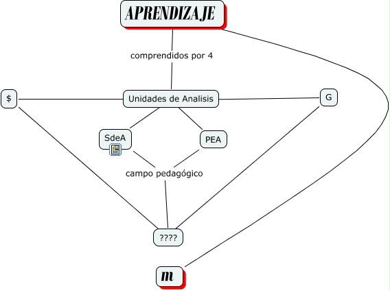 Este Cmap, tiene información relacionada con: aprendizaje TP4, Unidades de Analisis ???? PEA, ???? campo pedagógico PEA, ???? ???? $, Unidades de Analisis ???? SdeA, ???? campo pedagógico SdeA, Unidades de Analisis ???? G, m ???? APRENDIZAJE, APRENDIZAJE comprendidos por 4 Unidades de Analisis, ???? ???? G, Unidades de Analisis ???? $