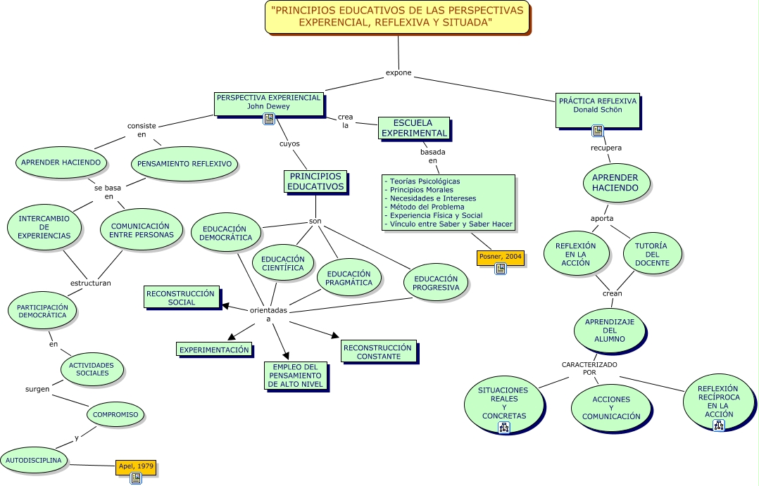 Este Cmap, tiene información relacionada con: PRINCIPIOS EDUCATIVOS EXPERENCIALES, - Teorías Psicológicas - Principios Morales - Necesidades e Intereses - Método del Problema - Experiencia Física y Social - Vínculo entre Saber y Saber Hacer ???? Posner, 2004, EDUCACIÓN DEMOCRÁTICA orientadas a RECONSTRUCCIÓN SOCIAL, EDUCACIÓN CIENTÍFICA orientadas a RECONSTRUCCIÓN CONSTANTE, EDUCACIÓN DEMOCRÁTICA orientadas a EMPLEO DEL PENSAMIENTO DE ALTO NIVEL, EDUCACIÓN CIENTÍFICA orientadas a RECONSTRUCCIÓN SOCIAL, APRENDER HACIENDO se basa en COMUNICACIÓN ENTRE PERSONAS, EDUCACIÓN PROGRESIVA orientadas a RECONSTRUCCIÓN CONSTANTE, APRENDIZAJE DEL ALUMNO CARACTERIZADO POR REFLEXIÓN RECÍPROCA EN LA ACCIÓN, EDUCACIÓN PRAGMÁTICA orientadas a RECONSTRUCCIÓN SOCIAL, INTERCAMBIO DE EXPERIENCIAS estructuran PARTICIPACIÓN DEMOCRÁTICA, EDUCACIÓN PRAGMÁTICA orientadas a EXPERIMENTACIÓN, ESCUELA EXPERIMENTAL basada en - Teorías Psicológicas - Principios Morales - Necesidades e Intereses - Método del Problema - Experiencia Física y Social - Vínculo entre Saber y Saber Hacer, APRENDIZAJE DEL ALUMNO CARACTERIZADO POR ACCIONES Y COMUNICACIÓN, EDUCACIÓN PROGRESIVA orientadas a RECONSTRUCCIÓN SOCIAL, EDUCACIÓN PRAGMÁTICA orientadas a RECONSTRUCCIÓN CONSTANTE, APRENDER HACIENDO se basa en INTERCAMBIO DE EXPERIENCIAS, PRÁCTICA REFLEXIVA Donald Schön recupera APRENDER HACIENDO, APRENDIZAJE DEL ALUMNO CARACTERIZADO POR SITUACIONES REALES Y CONCRETAS, PARTICIPACIÓN DEMOCRÁTICA en ACTIVIDADES SOCIALES, APRENDER HACIENDO aporta TUTORÍA DEL DOCENTE