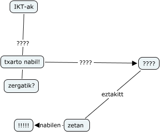 This Concept Map has information related to: ane, ???? eztakitt zetan, txarto nabil! ???? ????, IKT-ak ???? txarto nabil!, zergatik? ???? txarto nabil!, zetan nabilen !!!!!