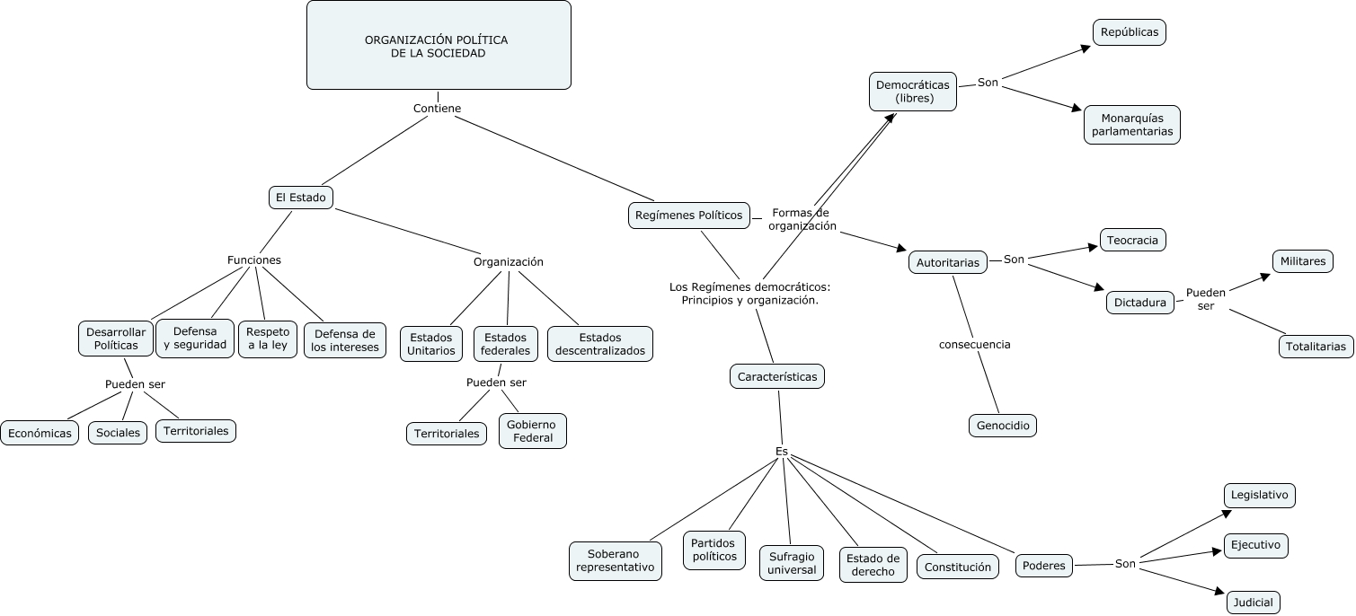 Este Cmap, tiene información relacionada con: Claudia y Mireia 2, El Estado Funciones Respeto a la ley, Características Es Estado de derecho, Características Es Constitución, El Estado Funciones Desarrollar Políticas, Dictadura Pueden ser Militares, Regímenes Políticos Formas de organización Autoritarias, Características Es Poderes, Características Es Soberano representativo, Democráticas (libres) Son Repúblicas, Desarrollar Políticas Pueden ser Económicas, Regímenes Políticos Formas de organización Democráticas (libres), Desarrollar Políticas Pueden ser Territoriales, Desarrollar Políticas Pueden ser Sociales, ORGANIZACIÓN POLÍTICA DE LA SOCIEDAD Contiene El Estado, Poderes Son Judicial, Características Es Partidos políticos, Poderes Son Ejecutivo, Regímenes Políticos Los Regímenes democráticos: Principios y organización. Características, Poderes Son Legislativo, El Estado Organización Estados federales