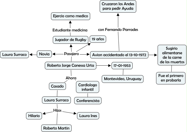 Este Cmap, tiene información relacionada con: Roberto Jorge Canessa Urta, Jugador de Rugby Estudiante medicina Ejercio como medico, Novia ???? Laura Surraco, Roberto Jorge Canessa Urta Ahora Cardiologo infantil, Laura Surraco Hijos Hilario, Roberto Jorge Canessa Urta ???? 17-01-1953, Laura Surraco Hijos Roberto Martin, Laura Surraco Hijos Laura Ines, Avion accidentado el 13-10-1972 ???? Sugirio alimentarse de la carne de los muertos, 17-01-1953 ???? Montevideo, Uruguay, Roberto Jorge Canessa Urta Pasajero Avion accidentado el 13-10-1972, Casado ???? Laura Surraco, Roberto Jorge Canessa Urta Ahora Casado, Sugirio alimentarse de la carne de los muertos ???? Fue el primero en probarla, Avion accidentado el 13-10-1972 con Fernando Parrades Cruzaron los Andes para pedir Ayuda, Cardiologo infantil ???? Conferencista, Roberto Jorge Canessa Urta Pasajero Jugador de Rugby, Roberto Jorge Canessa Urta Pasajero Novia, Roberto Jorge Canessa Urta Pasajero 19 años