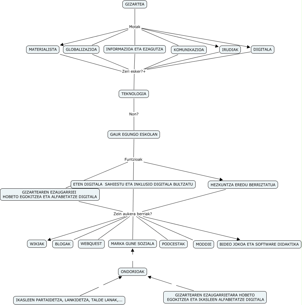 This Concept Map has information related to: Jon Urien, GIZARTEAREN EZAUGARRIETARA HOBETO EGOKITZEA ETA IKASLEEN ALFABETATZE DIGITALA ONDORIOAK, IRUDIAK Zeri esker?+ TEKNOLOGIA, IKASLEEN PARTAIDETZA, LANKIDETZA, TALDE LANAK,... ONDORIOAK, GLOBALIZAZIOA Zeri esker?+ TEKNOLOGIA, GIZARTEAREN EZAUGARRIEI HOBETO EGOKITZEA ETA ALFABETATZE DIGITALA Zein aukera berriak? WIKIAK, GIZARTEA Motak DIGITALA, TEKNOLOGIA Non? GAUR EGUNGO ESKOLAN, ETEN DIGITALA SAHIESTU ETA INKLUSIO DIGITALA BULTZATU Zein aukera berriak? PODCESTAK, GIZARTEAREN EZAUGARRIEI HOBETO EGOKITZEA ETA ALFABETATZE DIGITALA Zein aukera berriak? WEBQUEST, HEZKUNTZA EREDU BERRIZTATUA Zein aukera berriak? BLOGAK