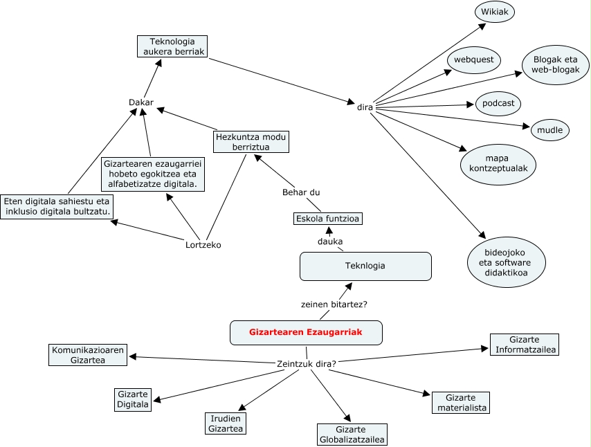 This Concept Map has information related to: Joshka Natke, Eten digitala sahiestu eta inklusio digitala bultzatu. Dakar Teknologia aukera berriak, Teknologia aukera berriak dira mapa kontzeptualak, Gizartearen Ezaugarriak zeinen bitartez? Teknlogia, Gizartearen Ezaugarriak Zeintzuk dira? Gizarte materialista, Teknologia aukera berriak dira bideojoko eta software didaktikoa, Teknologia aukera berriak dira mudle, Gizartearen ezaugarriei hobeto egokitzea eta alfabetizatze digitala. Dakar Teknologia aukera berriak, Gizartearen Ezaugarriak Zeintzuk dira? Gizarte Informatzailea, Gizartearen Ezaugarriak Zeintzuk dira? Komunikazioaren Gizartea, Hezkuntza modu berriztua Lortzeko Eten digitala sahiestu eta inklusio digitala bultzatu.