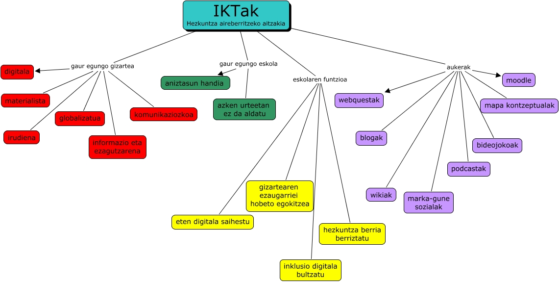 This Concept Map, created with IHMC CmapTools, has information related to: naroa zabala, IKTak Hezkuntza aireberritzeko aitzakia gaur egungo gizartea komunikaziozkoa, IKTak Hezkuntza aireberritzeko aitzakia gaur egungo gizartea irudiena, IKTak Hezkuntza aireberritzeko aitzakia aukerak marka-gune sozialak, IKTak Hezkuntza aireberritzeko aitzakia gaur egungo gizartea materialista, IKTak Hezkuntza aireberritzeko aitzakia aukerak podcastak, IKTak Hezkuntza aireberritzeko aitzakia gaur egungo eskola azken urteetan ez da aldatu, IKTak Hezkuntza aireberritzeko aitzakia eskolaren funtzioa inklusio digitala bultzatu, IKTak Hezkuntza aireberritzeko aitzakia eskolaren funtzioa eten digitala saihestu, IKTak Hezkuntza aireberritzeko aitzakia gaur egungo gizartea informazio eta ezagutzarena, IKTak Hezkuntza aireberritzeko aitzakia eskolaren funtzioa hezkuntza berria berriztatu, IKTak Hezkuntza aireberritzeko aitzakia aukerak moodle, IKTak Hezkuntza aireberritzeko aitzakia aukerak webquestak, IKTak Hezkuntza aireberritzeko aitzakia gaur egungo gizartea globalizatua, IKTak Hezkuntza aireberritzeko aitzakia gaur egungo eskola aniztasun handia, IKTak Hezkuntza aireberritzeko aitzakia eskolaren funtzioa gizartearen ezaugarriei hobeto egokitzea, IKTak Hezkuntza aireberritzeko aitzakia aukerak bideojokoak, IKTak Hezkuntza aireberritzeko aitzakia aukerak wikiak, IKTak Hezkuntza aireberritzeko aitzakia gaur egungo gizartea digitala, IKTak Hezkuntza aireberritzeko aitzakia aukerak blogak, IKTak Hezkuntza aireberritzeko aitzakia aukerak mapa kontzeptualak