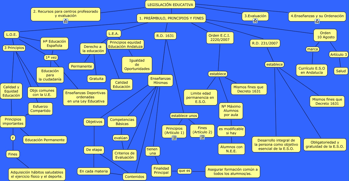Este Cmap, tiene información relacionada con: Preámbulo, Principios y Fines, Objetivos ???? De etapa, Enseñanzas Mínimas tienen una Finalidad Principal, LEGISLACIÓN EDUCATIVA ???? 1. PREÁMBULO, PRINCIPIOS Y FINES, R.D. 1631 establece unos Fines (Artículo 2), Orden E.C.I. 2220/2007 establece Limite edad permanencia en E.S.O., L.O.E. 3 Principios Esfuerzo Compartido, 1. PREÁMBULO, PRINCIPIOS Y FINES ???? L.O.E., Hª Educación Española 1ª vez Enseñanzas Deportivas ordenadas en una Ley Educativa, R.D. 1631 ???? Enseñanzas Mínimas, Orden 10 Agosto marca Currículo E.S.O en Andalucía, Orden 10 Agosto Artículo 3 Salud, L.O.E. ???? Hª Educación Española, Contenidos ???? De etapa, L.O.E. 3 Principios Calidad y Equidad Educación, LEGISLACIÓN EDUCATIVA ???? 4.Enseñanzas y su Ordenación, Orden E.C.I. 2220/2007 establece Mismos fines que Decreto 1631, Hª Educación Española 1ª vez Educación para la ciudadanía, 1. PREÁMBULO, PRINCIPIOS Y FINES ???? R.D. 231/2007, Enseñanzas Mínimas ???? Criterios de Evaluación, L.E.A. ???? Derecho a la educación