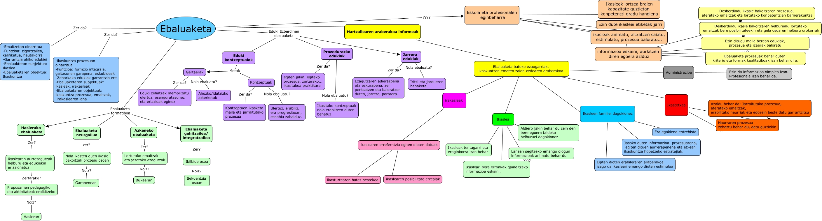 Este Cmap, tiene información relacionada con: Alazne Gabiria- garazintzat, Ebaluaketa bateko ezaugarriak, ikaskuntzan ematen zaion xedearen araberakoa. ???? Ikasleen familiei dagokionez, Ebaluaketa Eduki Ezberdinen ebaluaketa Prozedurazko edukiak, Eskola eta profesionalen eginbeharra ???? informazioa eskaini, aurkitzen diren egoera azlduz, Hasierako ebaluaketa Zer? ikaslearen aurrezagutzak helburu eta edukiekin erlazionatuz, Nola ikasten duen ikasle bakoitzak prozesu osoan Noiz? Garapenean, Ikasleen familiei dagokionez ???? Era egokiena entrebista, Ebaluaketa bateko ezaugarriak, ikaskuntzan ematen zaion xedearen araberakoa. ???? Administrazioa, Ikaslea ???? Ikasleari bere erronkak gainditzeko informazioa eskaini., informazioa eskaini, aurkitzen diren egoera azlduz ???? Desberdindu ikasle bakoitzaren helburuak, lortutako emaitzak bere posibilitateekin eta gela osoaren helburu orokorrak, Ikasleen familiei dagokionez ???? Jasoko duten informazioa: prozesuarena, egiten dituen aurrerapenena eta etxean ikaskuntza hobetzeko estratejiak., Ebaluaketa bateko ezaugarriak, ikaskuntzan ematen zaion xedearen araberakoa. ???? Ikaslea, Ebaluaketa Ebaluaketa formatiboa Ebaluaketa gehitzailea/ integratzailea, Administrazioa ???? Ezin da informazioa ximplea izan. Profesionala izan behar da., Ibilbide osoa Noiz? Sekuentzia osoan, irakasleak ???? ikaslearen erreferntzia egiten dioten datuak, Eduki kontzeptualak Motak Kontzeptuak, Ebaluaketa Zer da? -ikaskuntza prozesuan oinarritua -Funtzioa: formzio integrala, gaitasunen garapena, eskubideak -Zeharkako edukiak garrantzia ere -Ebaluaketaren subjektuak: ikasleak, irakasleak -Ebaluaketaren objektuak: ikaskuntza prozesua, emaitzak, irakaslearen lana, informazioa eskaini, aurkitzen diren egoera azlduz ???? Ezin ditugu maila berean edukiak, prozesua eta izaerak baloratu, Hartzailearen araberakoa informeak ???? Ebaluaketa bateko ezaugarriak, ikaskuntzan ematen zaion xedearen araberakoa., Proposamen pedagogiko eta aktibitateak eraikitzeko Noiz? Hasieran