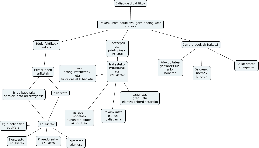 This Concept Map, created with IHMC CmapTools, has information related to: Pokoyo baliabide didaktikoa, Irakaskuntza eduki ezaugarri tipologikoen arabera ???? Eduki faktikoak irakatsi, Irakasteko Prozedurak eta edukierak ???? garapen modeloak aurkezten dituen aktibitatea, Edukierak ???? Egin behar den edukiera, Edukierak ???? Kontzeptu edukierak, Baliabide didaktikoa ???? Irakaskuntza eduki ezaugarri tipologikoen arabera, Irakasteko Prozedurak eta edukierak ???? Egoera esanguratsuetatik eta funtzionaletik habiatu., Irakaskuntza eduki ezaugarri tipologikoen arabera ???? Kontzeptu eta printzipioak irakatsi, Kontzeptu eta printzipioak irakatsi ???? Irakasteko Prozedurak eta edukierak, Edukierak ???? Jarreraren edukiera, elkarketa ???? Edukierak, Eduki faktikoak irakatsi ???? Errepikapen ariketak, Errepikapen ariketak ???? elkarketa, Edukierak ???? Prozedurazko edukiera, Errepikapen ariketak ???? Errepikapenak: antolakuntza adierazgarria, Jarrera edukiak irakatsi ???? Solidaritatea, errespetua, Irakasteko Prozedurak eta edukierak ???? Laguntza: gradu eta ekintza ezberdinetarako, Jarrera edukiak irakatsi ???? Baloreak, normak jarrerak, Jarrera edukiak irakatsi ???? Afektibitatea garrantzitsua arlo honetan, Irakaskuntza eduki ezaugarri tipologikoen arabera ???? Jarrera edukiak irakatsi, Irakasteko Prozedurak eta edukierak ???? Irakaskuntza ekintza baliagarria