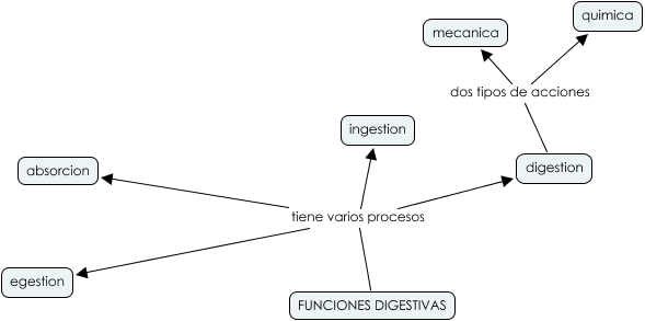 Este Cmap, tiene información relacionada con: funciones, FUNCIONES DIGESTIVAS tiene varios procesos absorcion, FUNCIONES DIGESTIVAS tiene varios procesos egestion, digestion dos tipos de acciones quimica, FUNCIONES DIGESTIVAS tiene varios procesos ingestion, digestion dos tipos de acciones mecanica, FUNCIONES DIGESTIVAS tiene varios procesos digestion
