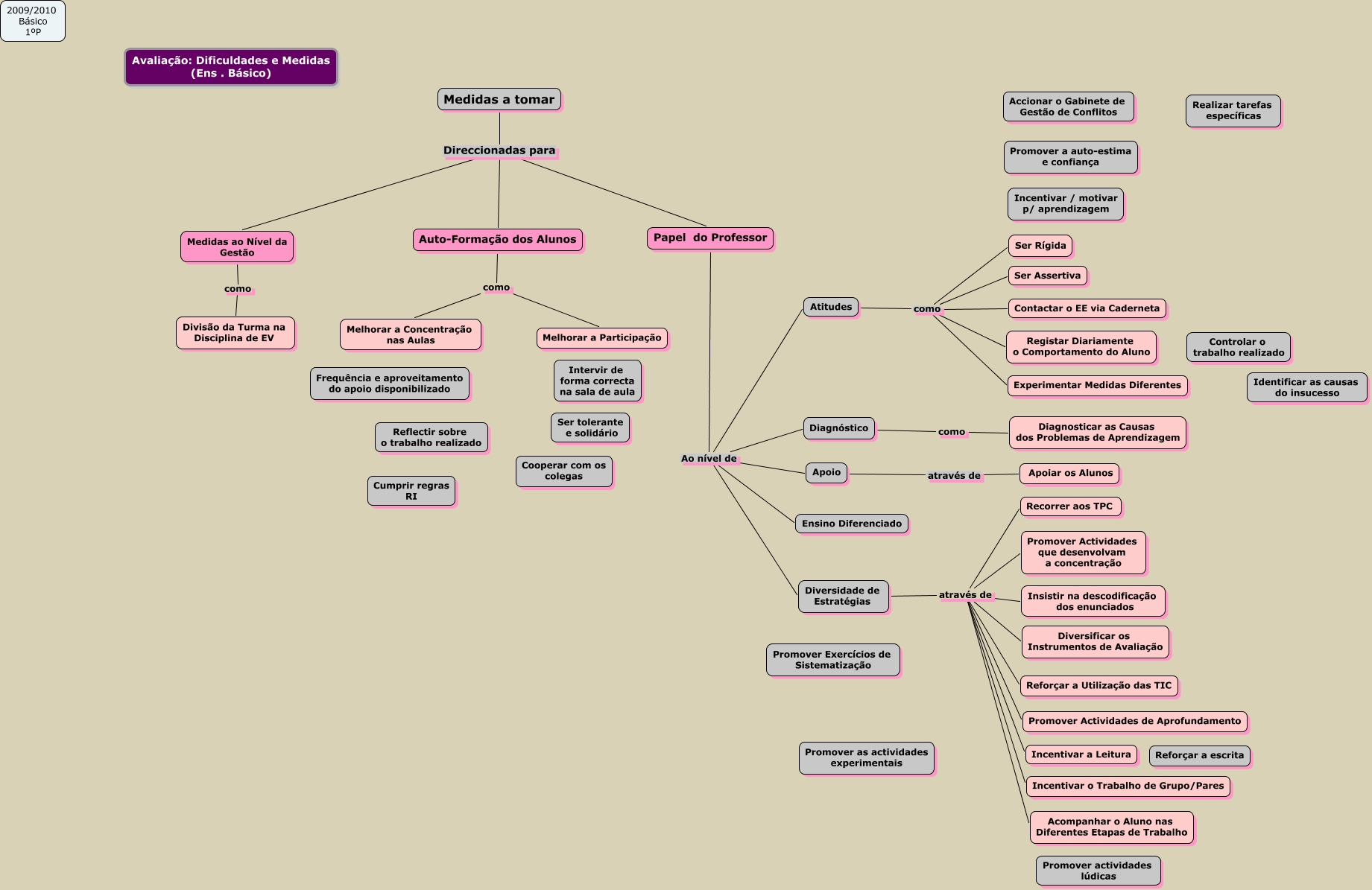 Esse mapa conceitual, produzido no IHMC CmapTools, tem a informação relacionada a: Aval -prob med 20092010_3, Medidas a tomar Direccionadas para Papel do Professor, Atitudes como Ser Rígida, Diversidade de Estratégias através de Incentivar o Trabalho de Grupo/Pares, Papel do Professor Ao nível de Atitudes, Diversidade de Estratégias através de Insistir na descodificação dos enunciados, Medidas ao Nível da Gestão como Divisão da Turma na Disciplina de EV, Diversidade de Estratégias através de Diversificar os Instrumentos de Avaliação, Medidas a tomar Direccionadas para Medidas ao Nível da Gestão, Papel do Professor Ao nível de Diversidade de Estratégias, Medidas a tomar Direccionadas para Auto-Formação dos Alunos, Atitudes como Experimentar Medidas Diferentes, Atitudes como Contactar o EE via Caderneta, Papel do Professor Ao nível de Ensino Diferenciado, Diversidade de Estratégias através de Reforçar a Utilização das TIC, Diagnóstico como Diagnosticar as Causas dos Problemas de Aprendizagem, Diversidade de Estratégias através de Incentivar a Leitura, Diversidade de Estratégias através de Promover Actividades que desenvolvam a concentração, Diversidade de Estratégias através de Recorrer aos TPC, Diversidade de Estratégias através de Promover Actividades de Aprofundamento, Atitudes como Registar Diariamente o Comportamento do Aluno