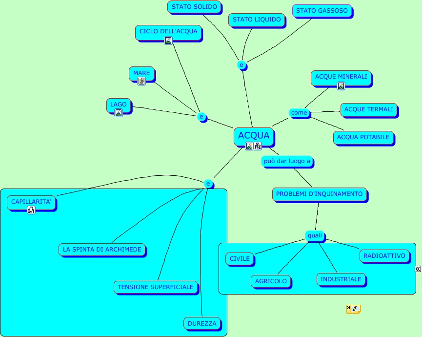 Questa Mappa Concettuale ha informazioni correlate a: ACQUA, ACQUA come ACQUA POTABILE, PROBLEMI D'INQUINAMENTO quali AGRICOLO, ACQUA e MARE, ACQUA e STATO SOLIDO, ACQUA e CAPILLARITA', PROBLEMI D'INQUINAMENTO quali RADIOATTIVO, ACQUA e TENSIONE SUPERFICIALE, ACQUA può dar luogo a PROBLEMI D'INQUINAMENTO, ACQUA come ACQUE TERMALI, ACQUA e DUREZZA