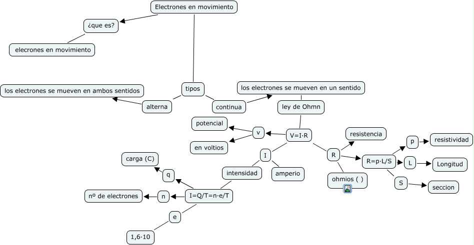 Este mapa conceptual tiene información relacionada a: sergio guzman, ley de Ohmn V=I·R, ¿que es? elecrones en movimiento, R=p·L/S p, tipos alterna, R=p·L/S S, L Longitud, Electrones en movimiento ¿que es?, R=p·L/S L, los electrones se mueven en un sentido ley de Ohmn, q carga (C), R R=p·L/S, R resistencia, tipos continua, v en voltios, R ohmios ( ), I=Q/T=n·e/T n, p resistividad, n nº de electrones, V=I·R R, I=Q/T=n·e/T e