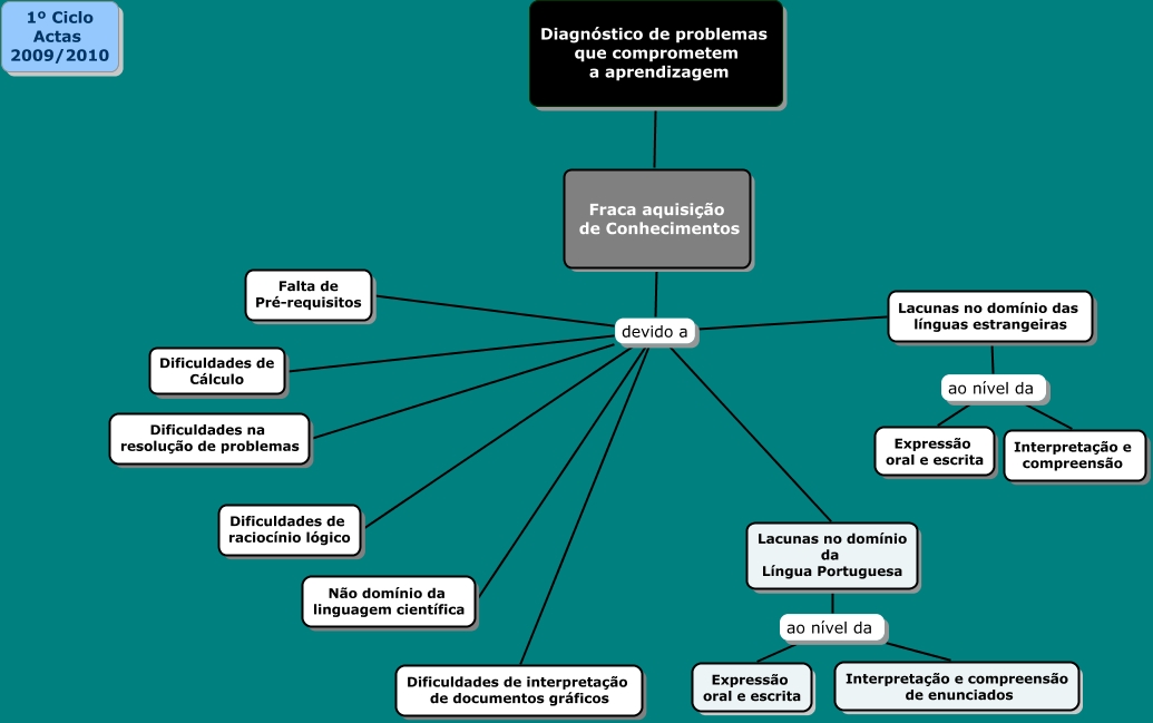 Esse mapa conceitual, produzido no IHMC CmapTools, tem a informação relacionada a: 3º Ciclo - Actas IP - Justificação dos níveis inferiores a 3 - 20092010_2, Lacunas no domínio da Língua Portuguesa ao nível da Interpretação e compreensão de enunciados, Lacunas no domínio da Língua Portuguesa ao nível da Expressão oral e escrita, Fraca aquisição de Conhecimentos devido a Dificuldades de Cálculo, Fraca aquisição de Conhecimentos devido a Não domínio da linguagem científica, Lacunas no domínio das línguas estrangeiras ao nível da Interpretação e compreensão, Diagnóstico de problemas que comprometem a aprendizagem ???? Fraca aquisição de Conhecimentos, Fraca aquisição de Conhecimentos devido a Falta de Pré-requisitos, Fraca aquisição de Conhecimentos devido a Dificuldades na resolução de problemas, Fraca aquisição de Conhecimentos devido a Lacunas no domínio das línguas estrangeiras, Fraca aquisição de Conhecimentos devido a Dificuldades de interpretação de documentos gráficos, Lacunas no domínio das línguas estrangeiras ao nível da Expressão oral e escrita, Fraca aquisição de Conhecimentos devido a Dificuldades de raciocínio lógico, Fraca aquisição de Conhecimentos devido a Lacunas no domínio da Língua Portuguesa