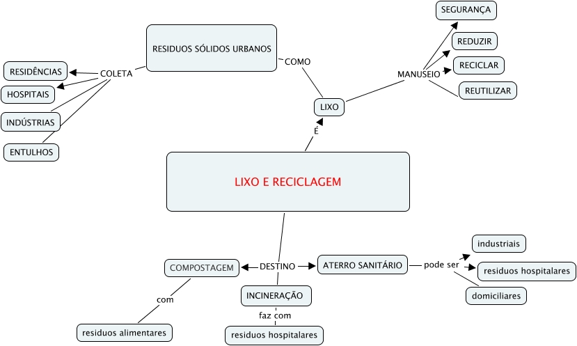 Esse mapa conceitual, produzido no IHMC CmapTools, tem a informação relacionada a: pratica de ensino mapa, RESIDUOS SÓLIDOS URBANOS COLETA HOSPITAIS, LIXO E RECICLAGEM DESTINO INCINERAÇÃO, LIXO E RECICLAGEM É LIXO, LIXO MANUSEIO REDUZIR, ATERRO SANITÁRIO pode ser industriais, RESIDUOS SÓLIDOS URBANOS COLETA RESIDÊNCIAS, LIXO E RECICLAGEM DESTINO ATERRO SANITÁRIO, COMPOSTAGEM com residuos alimentares, RESIDUOS SÓLIDOS URBANOS COLETA ENTULHOS, ATERRO SANITÁRIO pode ser domiciliares, ATERRO SANITÁRIO pode ser residuos hospitalares, RESIDUOS SÓLIDOS URBANOS COLETA INDÚSTRIAS, INCINERAÇÃO faz com residuos hospitalares, LIXO MANUSEIO SEGURANÇA, LIXO MANUSEIO REUTILIZAR, LIXO MANUSEIO RECICLAR, LIXO E RECICLAGEM DESTINO COMPOSTAGEM, RESIDUOS SÓLIDOS URBANOS COMO LIXO