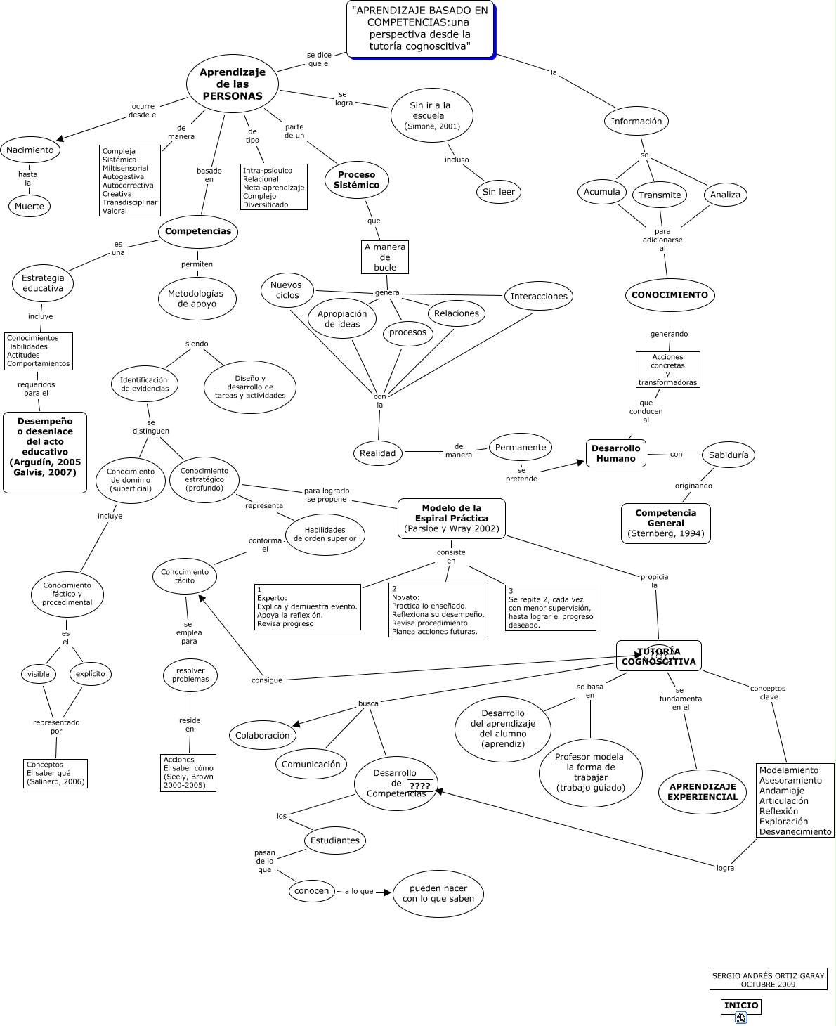 Este Cmap, tiene información relacionada con: APRENDIZAJE BASADO EN COMPETENCIAS, TUTORÍA COGNOSCITIVA conceptos clave Modelamiento Asesoramiento Andamiaje Articulación Reflexión Exploración Desvanecimiento, Información se Transmite, Competencias es una Estrategia educativa, Aprendizaje de las PERSONAS ocurre desde el Nacimiento, 1 Experto: Explica y demuestra evento. Apoya la reflexión. Revisa progreso consiste en 3 Se repite 2, cada vez con menor supervisión, hasta lograr el progreso deseado., conocen a lo que pueden hacer con lo que saben, Aprendizaje de las PERSONAS parte de un Proceso Sistémico, Estudiantes pasan de lo que conocen, Metodologías de apoyo siendo Identificación de evidencias, Interacciones genera Apropiación de ideas, Nuevos ciclos con la Realidad, Conocimiento estratégico (profundo) representa Habilidades de orden superior, Aprendizaje de las PERSONAS de tipo Intra-psíquico Relacional Meta-aprendizaje Complejo Diversificado, Transmite para adicionarse al CONOCIMIENTO, Conocimientos Habilidades Actitudes Comportamientos requeridos para el Desempeño o desenlace del acto educativo (Argudín, 2005 Galvis, 2007), resolver problemas reside en Acciones El saber cómo (Seely, Brown 2000-2005), Acumula se Transmite, Modelo de la Espiral Práctica (Parsloe y Wray 2002) consiste en 3 Se repite 2, cada vez con menor supervisión, hasta lograr el progreso deseado., Identificación de evidencias se distinguen Conocimiento estratégico (profundo), visible representado por Conceptos El saber qué (Salinero, 2006)