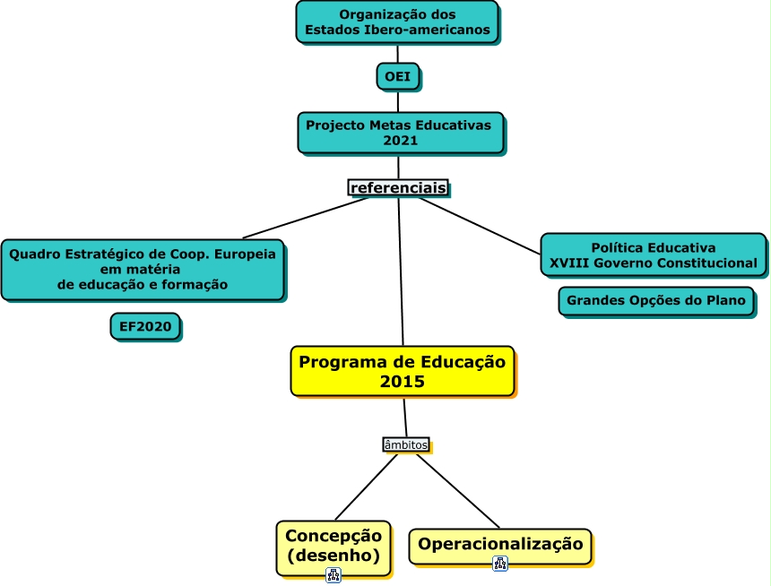 Esse mapa conceitual, produzido no IHMC CmapTools, tem a informação relacionada a: Programa Educação 2015 - referenciais, Programa de Educação 2015 âmbitos Operacionalização, Quadro Estratégico de Coop. Europeia em matéria de educação e formação referenciais Programa de Educação 2015, Programa de Educação 2015 âmbitos Concepção (desenho), Quadro Estratégico de Coop. Europeia em matéria de educação e formação referenciais Organização dos Estados Ibero-americanos, Quadro Estratégico de Coop. Europeia em matéria de educação e formação referenciais Política Educativa XVIII Governo Constitucional